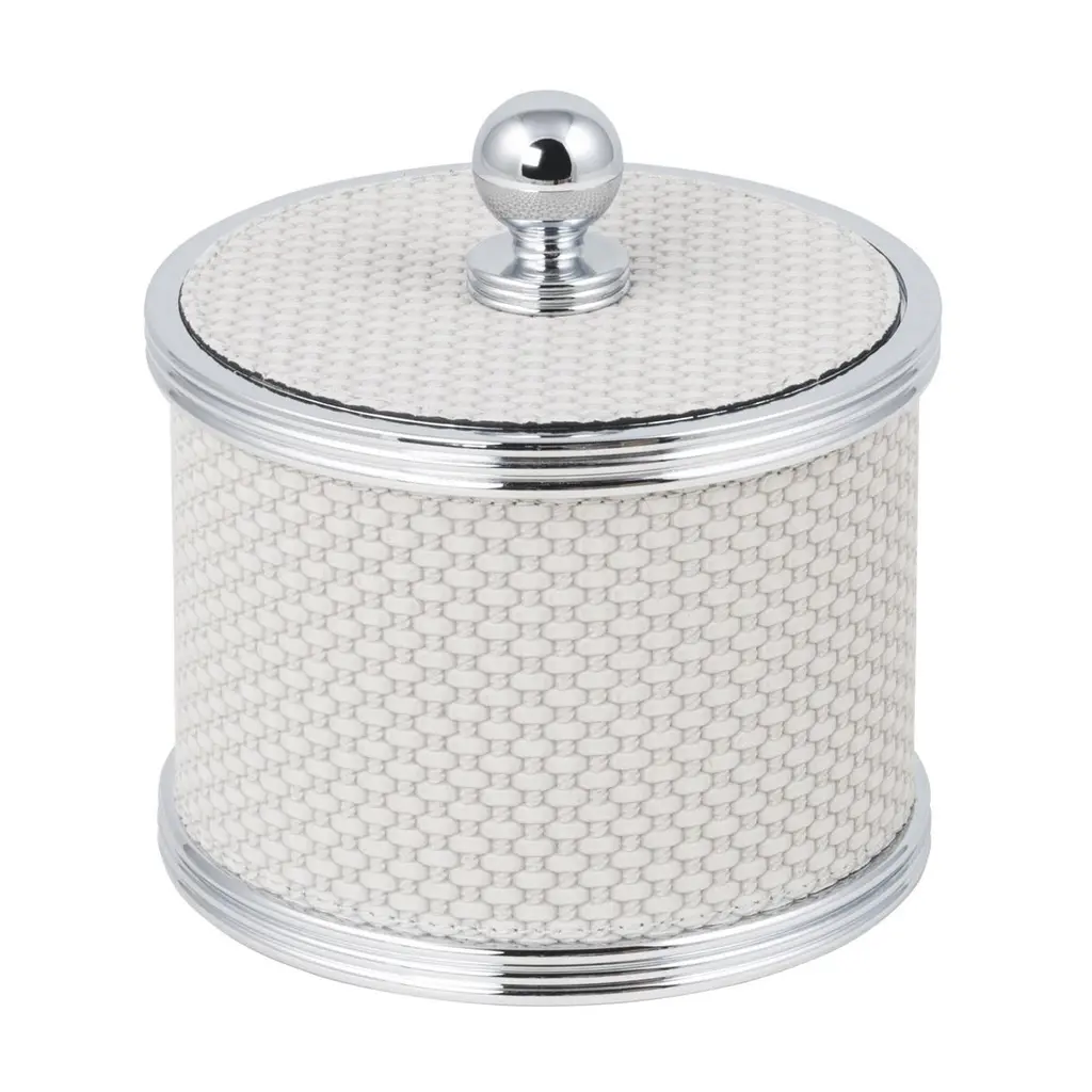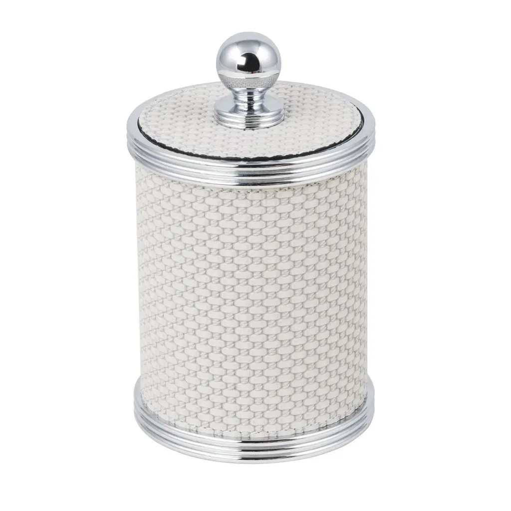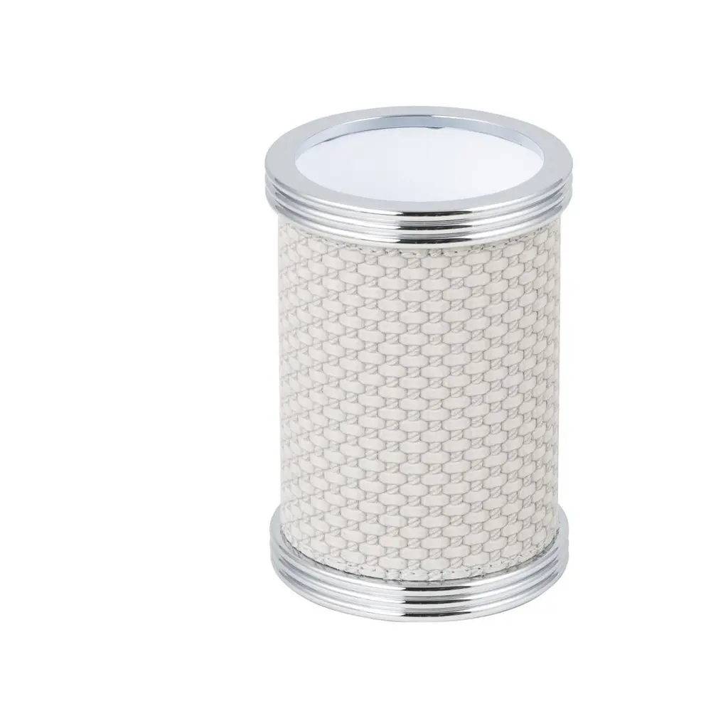 This luxurious bathroom set is made up of a soap dispenser and a toothbrush holder and two boxes, in two different sizes. All objects, are made in solid brass with a non-slip and waterproof rubber base. Each item is lined outside with leather that can be customized in color and texture. An elegant addition to a Classic bathroom, this set will instantly enrich the room with its sophisticated charm and exquisite craftsmanship.