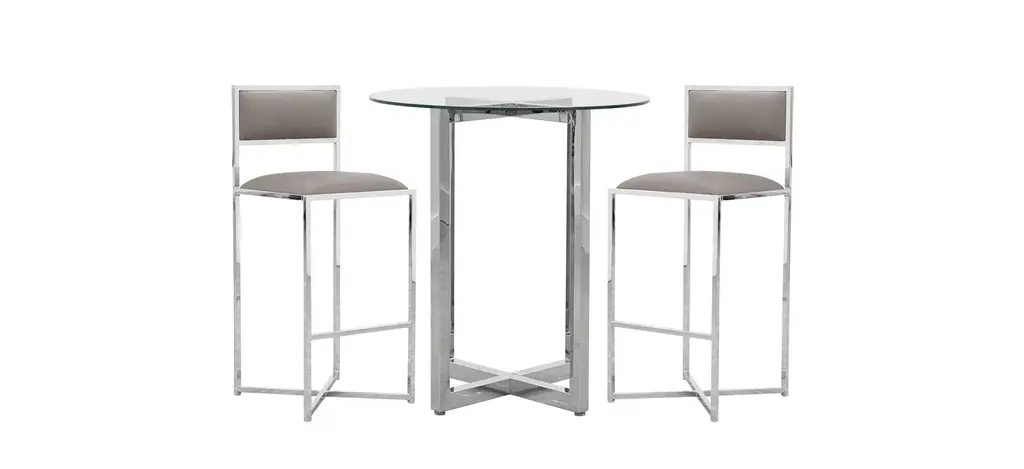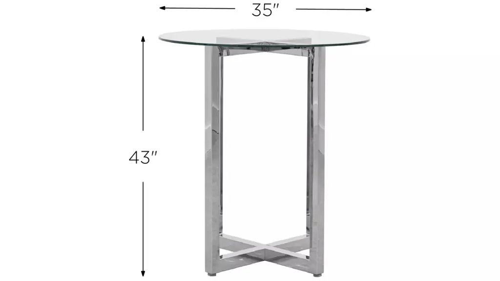Exceptional from top to bottom, the Amalfi Glass Bar Height Dining Table features a glass top with chamfered edging for increased durability. One-piece metal base are hand-cut and welded from tubular stainless steel for durability and chrome-plated for a mirror finish. Legs are fitted with non-marking nylon glides.