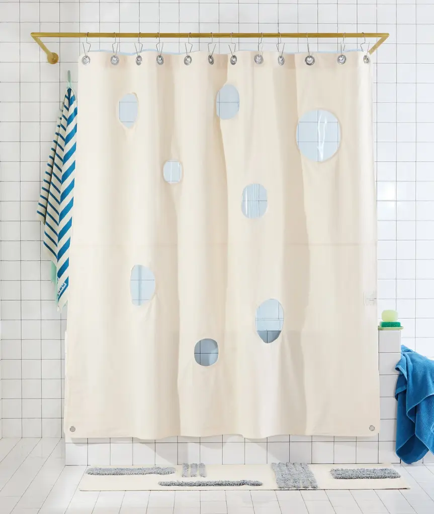 Celebrate your curves with this shower curtain by Amanda Laurel Atkins from Deny. Features an assortment of illustrated breasts. Printed on crisp polyester with perforations along the top edge for easy setup. **Features** \- Patterned shower curtain by Amanda Laurel Atkins for Deny \- Finished with illustrated breasts printed allover the front \- Ready for hanging with enforced buttonholes at the top edge \- Recommended for use with shower liner **Content + Care** \- Shower curtain hooks and liner sold separately \- 100% Polyester, 150 gsm \- Machine wash \- Imported **Size** \- Dimensions: 74"l x 71"w