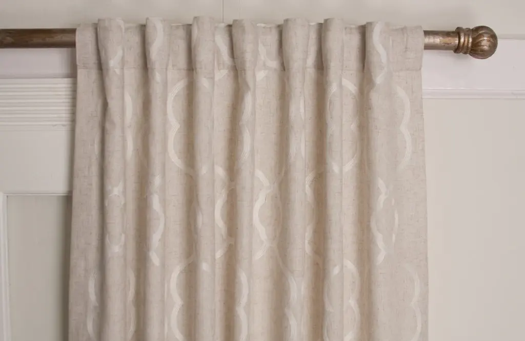 Natural organic linen & classic blended fabric with a modern embroidered trellis pattern provides a warm atmosphere. A great neutral backdrop allows other design components of the room to take the visual spotlight. The rod pocket header has 8 back tabs. A timeless collection for the fashion conscious, decorating guru & interior design expert. RT Dressings is committed to designing extraordinary window treatments with a unique blend of classic design mixed with today''s home fashion trends. We make personalizing a space easy to do with our exclusive & exciting design options. Add designer details to your decor with our quality crafted drapery panels.