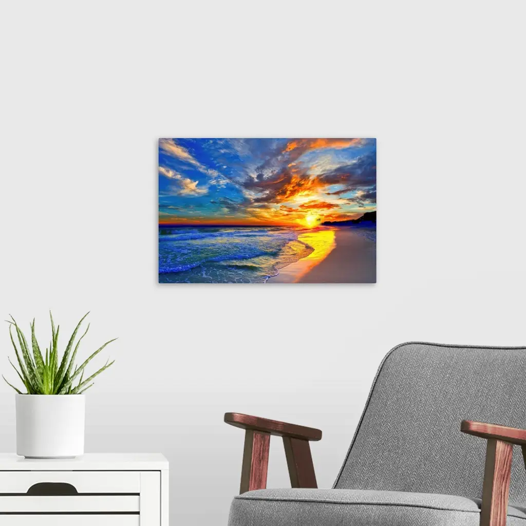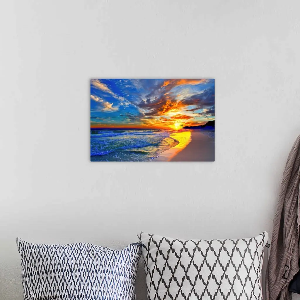 Amazing Red Blue Sunset Beach Canvas