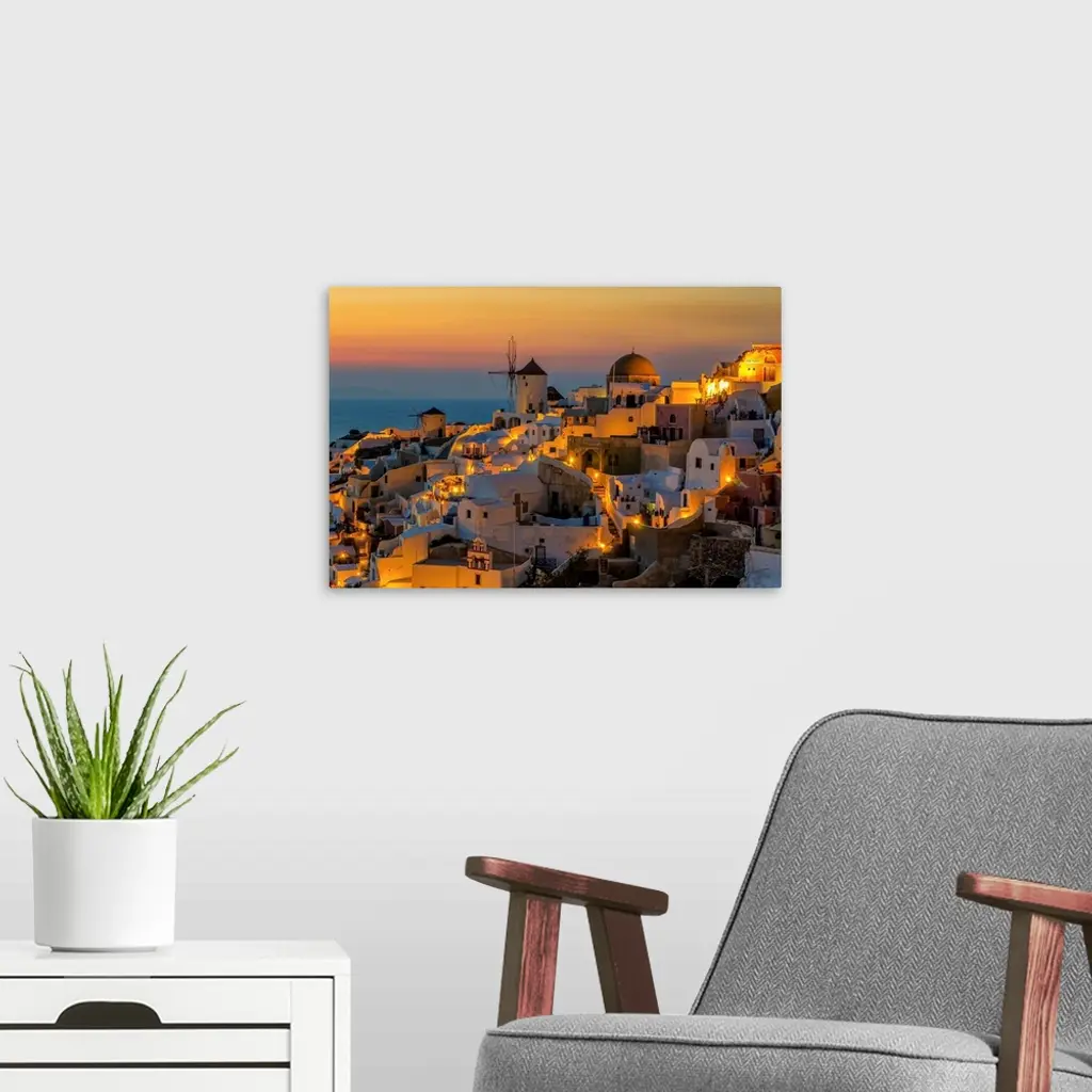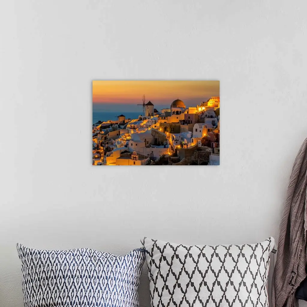 Sunset moment in Oia village, Santorini island, Greece.