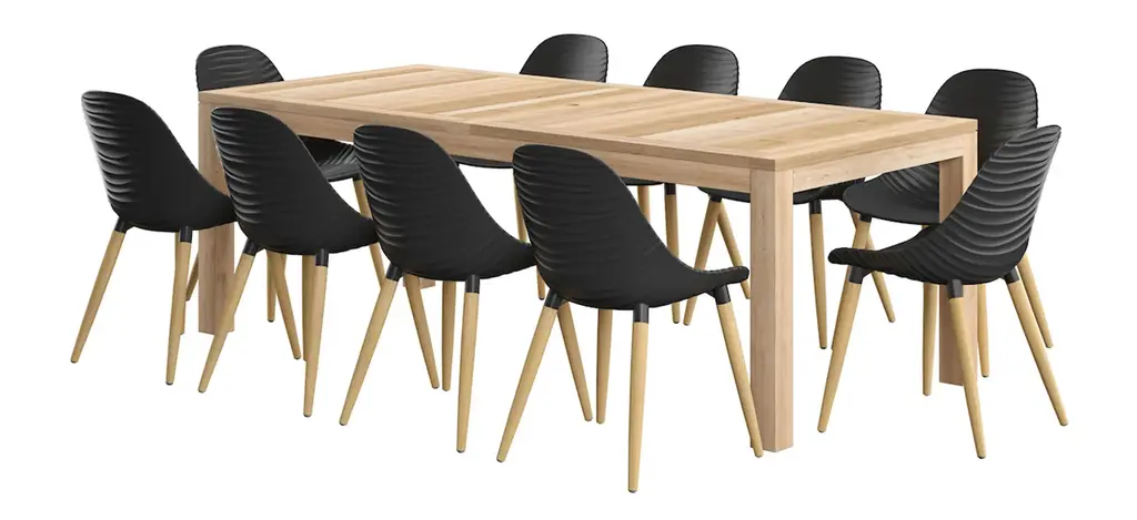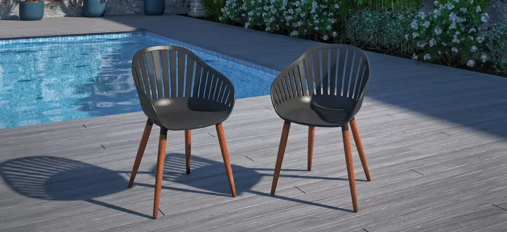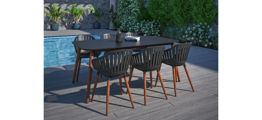Amazonia outdoor 7-pc. rectangular patio dining table set focuses on contemporary and modern design, comfort, and maintaining the durability of each piece. This patio set is crafted to enhance your outdoor areas with modern lines and colors. Wood materials are made of 100% FSC certified eucalyptus with premium finishes and certified high-quality teak wood. Also includes materials that are perfect for outdoors because of their durability and weather resistance. Immerse yourself in the Amazonia patio set.