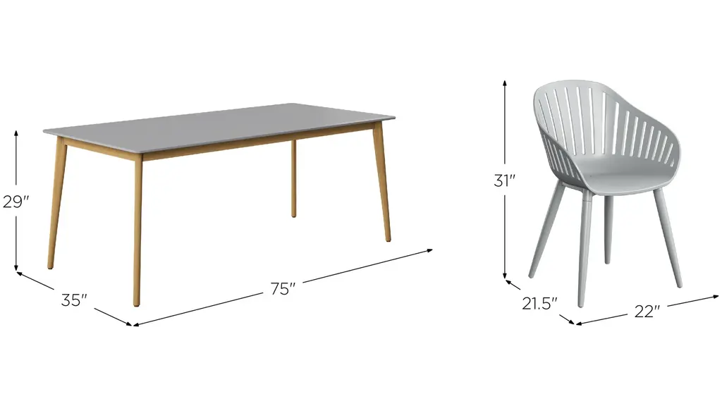 Amazonia outdoor 7-pc. rectangular patio dining table set focuses on contemporary and modern design, comfort, and maintaining the durability of each piece. This patio set is crafted to enhance your outdoor areas with modern lines and colors. Wood materials are made of 100% FSC certified eucalyptus with premium finishes and certified high-quality teak wood. Also includes materials that are perfect for outdoors because of their durability and weather resistance. Immerse yourself in the Amazonia patio set.