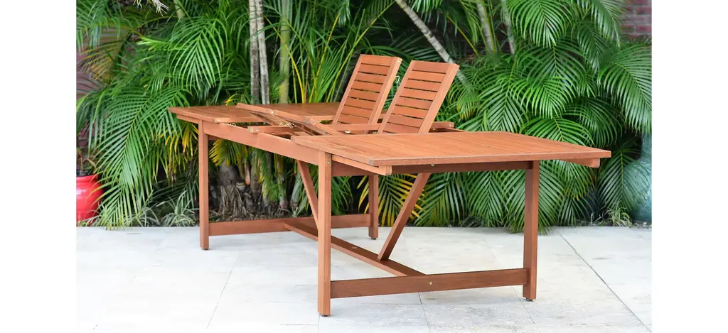 Amazonia Outdoor Eucalyptus Rectangular Dining Table W/ Leaf