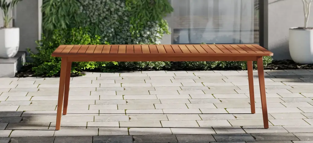 Amazonia outdoor rectangular table focuses on contemporary and modern design, comfort, and maintaining the durability of this piece. This table is crafted to enhance your outdoor areas with modern lines and colors. Wood materials are made of 100% FSC certified eucalyptus with premium finishes and certified quality teak wood. Also includes materials that are perfect for outdoors because of their durability and weather resistance. Immerse yourself in the Amazonia outdoor dining table.