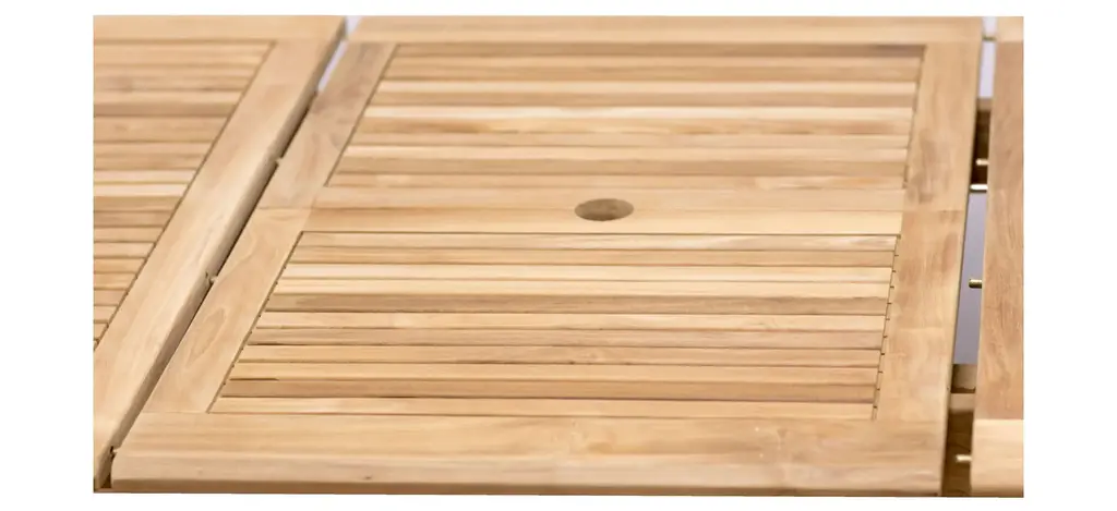 Amazonia outdoor teak rectangular dining table with leaf focuses on contemporary and modern design, comfort, and maintaining the durability of this piece. This table is crafted to enhance your outdoor areas with modern lines and colors. Wood materials are made of 100% FSC certified eucalyptus with premium finishes and certified quality teak wood. Also includes materials that are perfect for outdoors because of their durability and weather resistance. Immerse yourself in the Amazonia outdoor dining table.