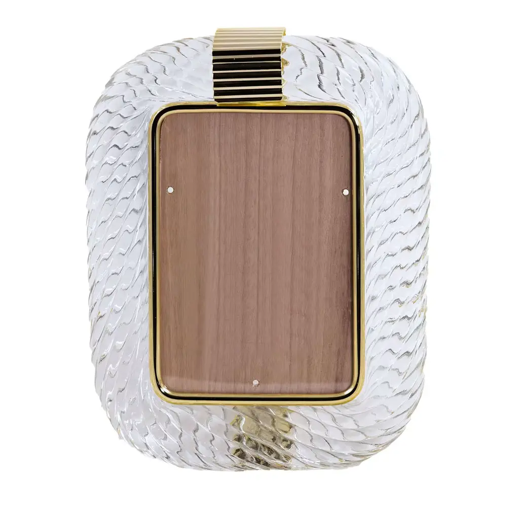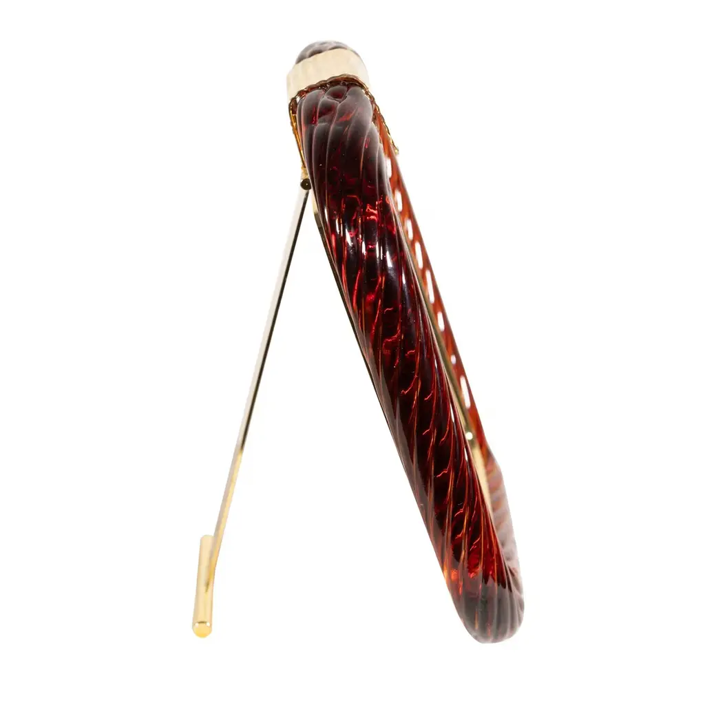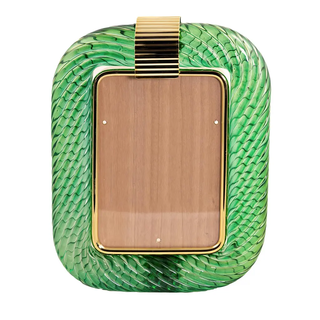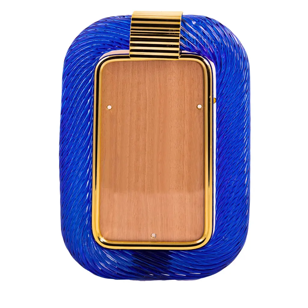 This frame is handcrafted in a historic Venetian glassworks using the traditional blown-glass twisting technique, resulting in a fluid, three-dimensional texture. Its warm amber hue captures and reflects light, accentuating artisanal detail. The hand-shaped brass structure is offered in a matte finish, with glossy brass available upon request. Additional color variations are offered in the Artemest catalog. A smaller size is available upon request; please contact the Concierge for more information.