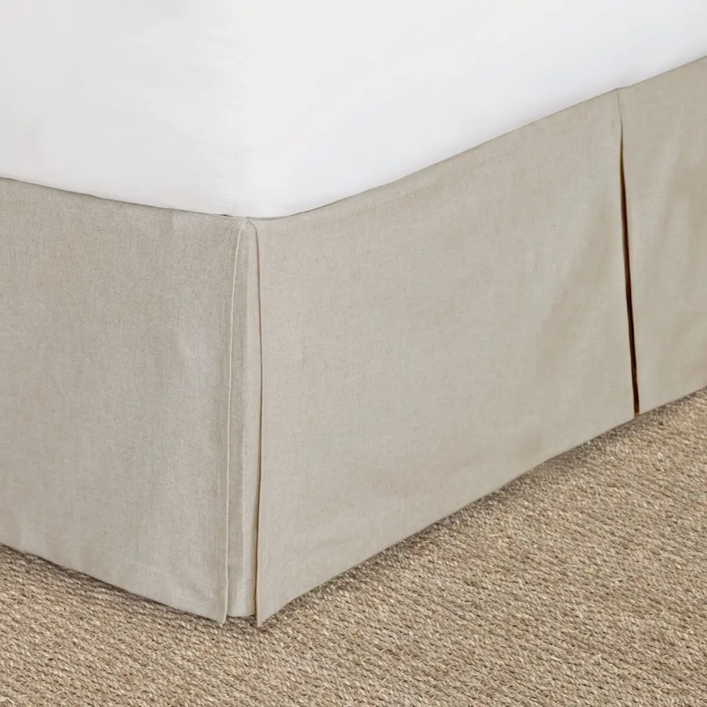 With its split corners, kick pleats, and neutral hue, this linen-blend bed skirt brings tailored elegance to just about any bed.