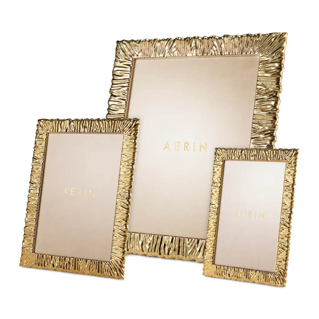AERIN's Ambroise Frame combines the beautiful texture of a flower petal with a gilt-tone to present a look that is elegant and luxurious.