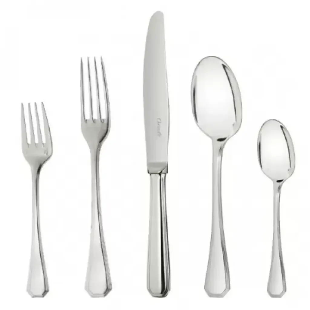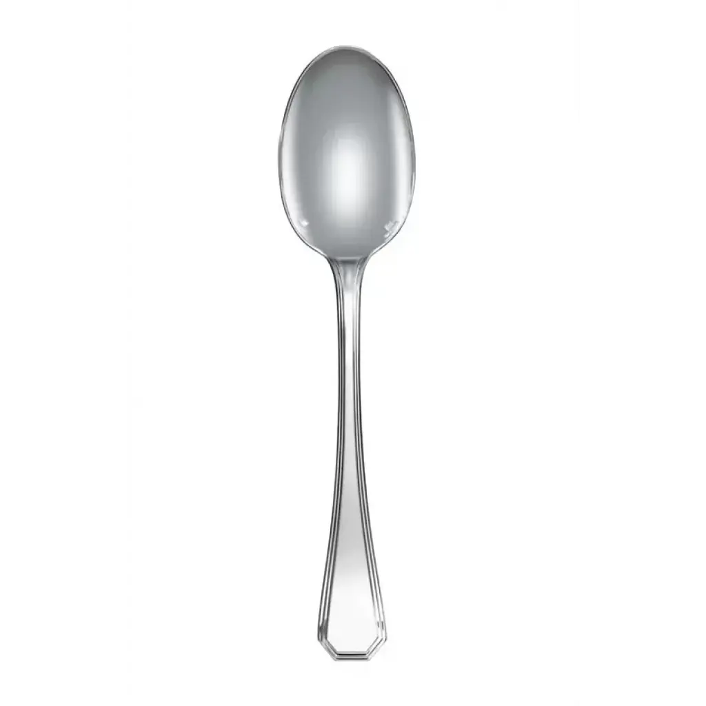 The silver plated salad serving fork in the Albi pattern can be used in conjunction with a salad serving spoon to dish up mixed greens. The wide and round bowl and tines minimizes leaf damage. Following World War I, America became synonymous with modernity and the world fell in love with its music, literature, art, lifestyle and architecture. To commemorate the across-the-pond admiration, Christofle named this 1933-launched Art Deco pattern of angular corners, beveled edges and masculine lines after the country. Created in 1933 & presented at the International Exposition of Arts & Techniques in 1937, the angular corners of this model are characteristic of the Art Deco style. Thanks to its creations in silver, Christofle is a symbol of luxury and elegance. Since its founding in the mid-19th century, it has been a continous innovative force and has infused each era with a new art of living. Thus, over time, this prestigious company has revolutionized styles, techniques, and methods for the production and distribution of silver plate and the decorative arts. A player in and privileged witness to the evolution of taste, customs, and traditions, Christofle has always seen its name associated with major creative trends, renowned artists such as Man Ray or Jean Cocteau, avant-garde architects such as Gio Ponti, and modernist silversmiths such as Lino Sabattini and Christian Fjerdingsatd, as well as present-day designers such as Andrée Putman, Martin Szekely or Ora ïto. Today, as in the past, whether gracing the tables of emperors, princes, or maharajas, in palaces, on board the Trans-Siberian Railway, Orient Express, or transatlantic ocean liners, or in the contemporary restaurants, Christofle continues to make an impression.