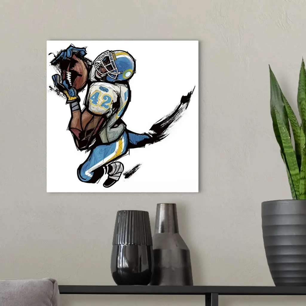 American football player holding ball wall art for home and office decor. Discover canvas art prints, photos, mural, big canvas art and framed wall art in GreatBigCanvas.com's varied collections.