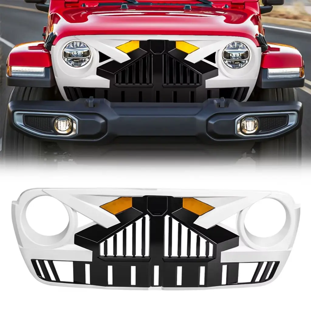 American Modified Grille W/ Amber Leds Compatible W/ 2018-2023 Jeep Wrangler Jl & Gladiator Jt W/ Camera, Empire, Glossy Black