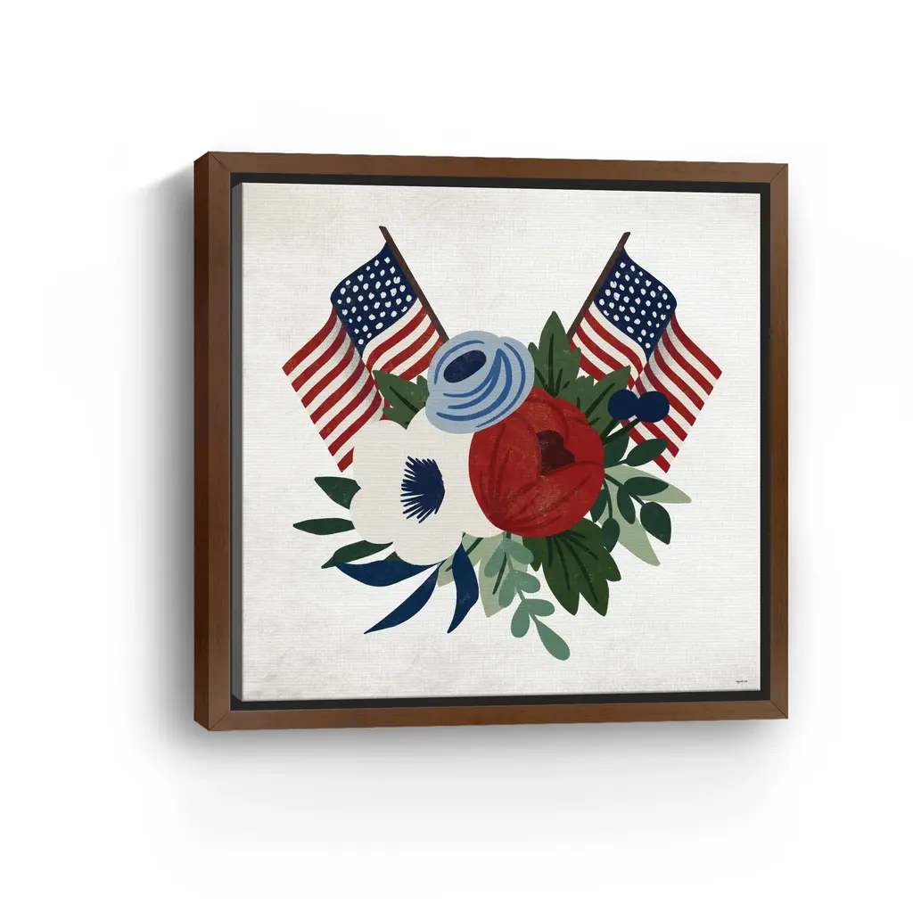 Americana Floral Canvas Giclee - Framed / Dark Walnut / 20x20