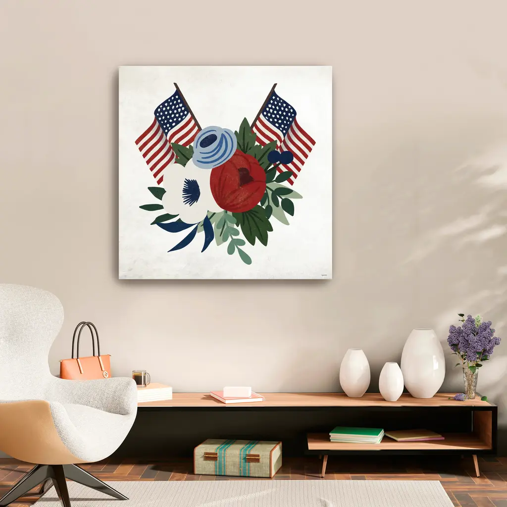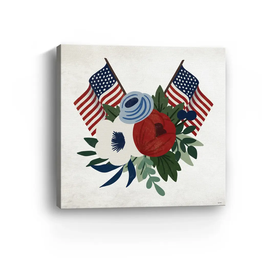 Americana Floral Canvas Giclee - Wrapped Canvas / None / 20x20