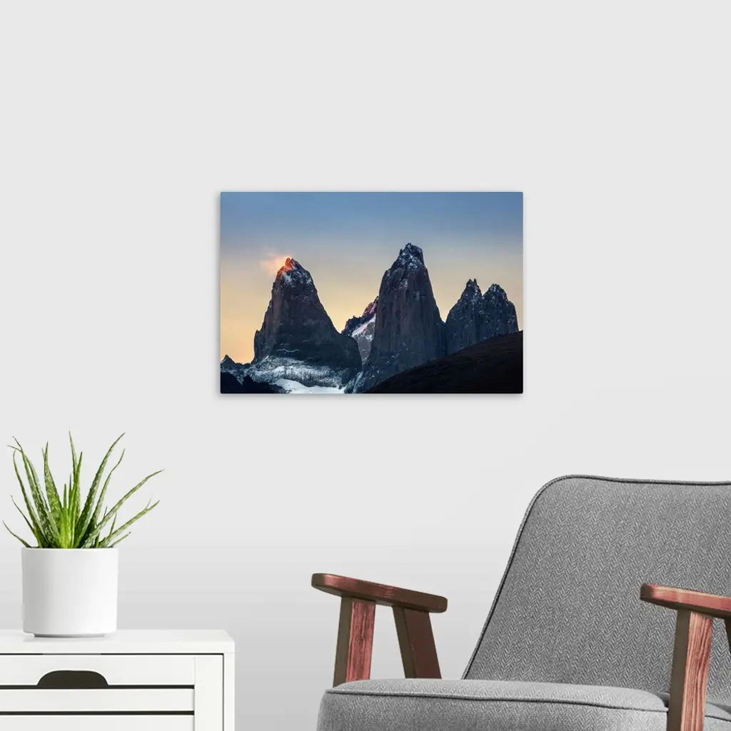 Americas, South America, Chile, Patagonia, The Torres Del Paine Mountains At Sunset