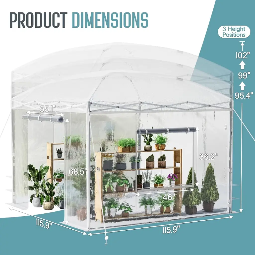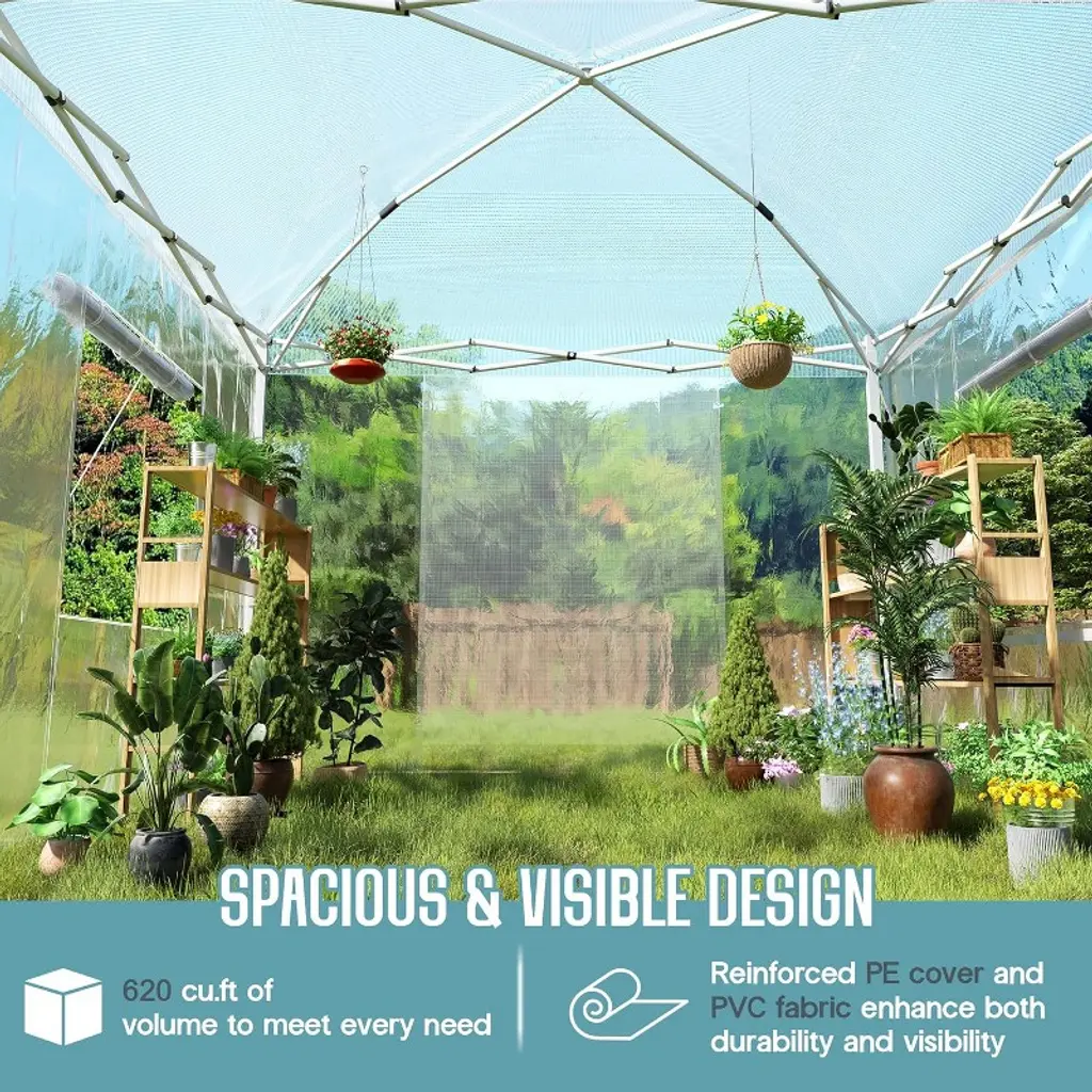 Amerlife 10×10×8.5 Ft Outdoors Pop-up Greenhouses With Adjustable Reinforced Frame