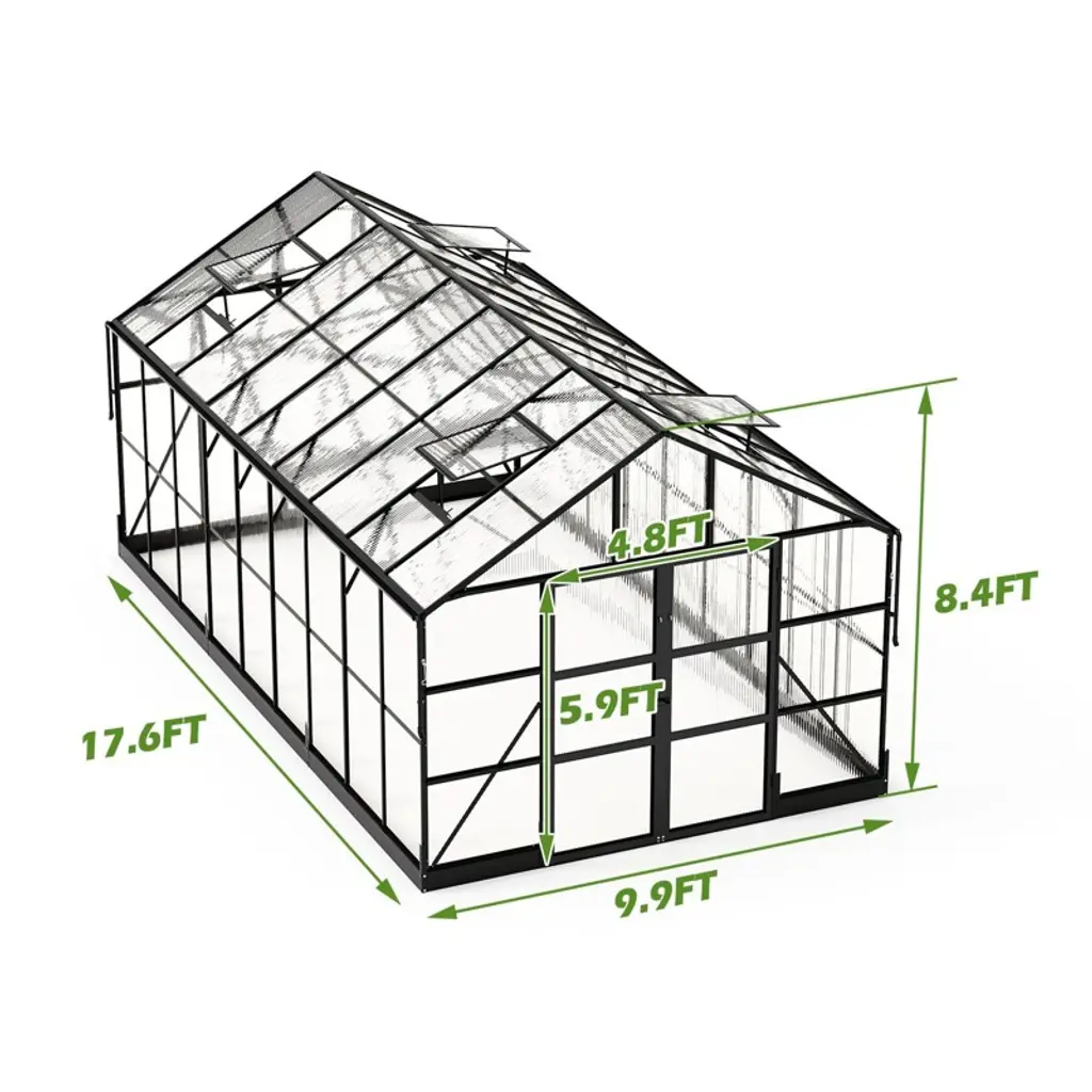 Amerlife 10x18x8.4 Ft Polycarbonate Greenhouse With 4 Vents, Rain Gutter, Heavy Duty Aluminum Frame