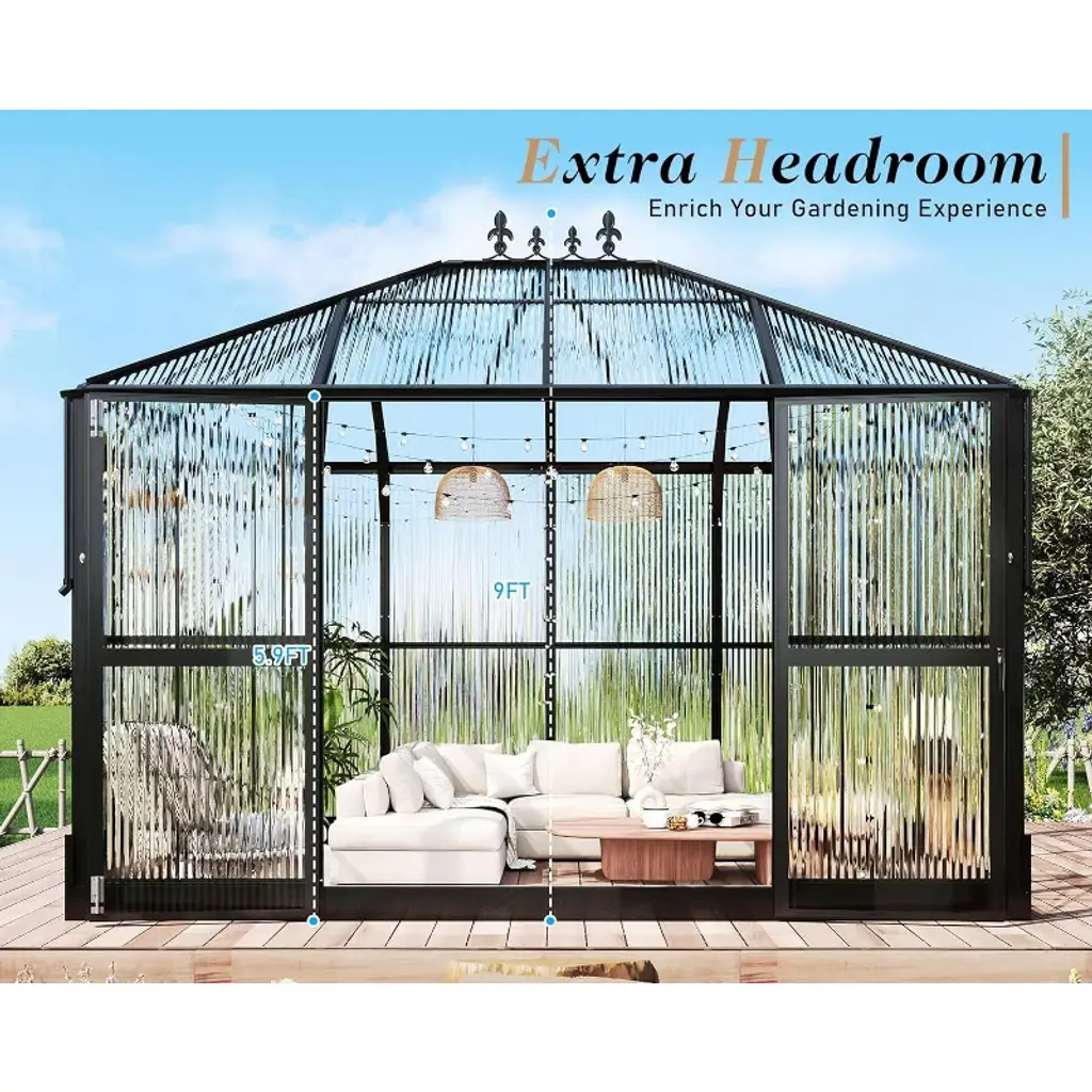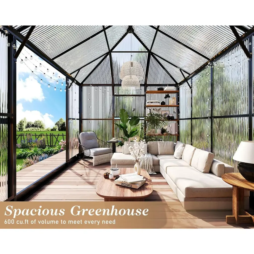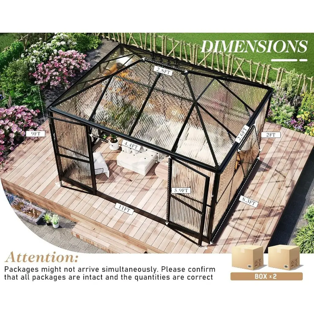 Amerlife 11x8.3x9 Ft Polycarbonate Greenhouse With 4 Vent Windows, Lockable Double Doors