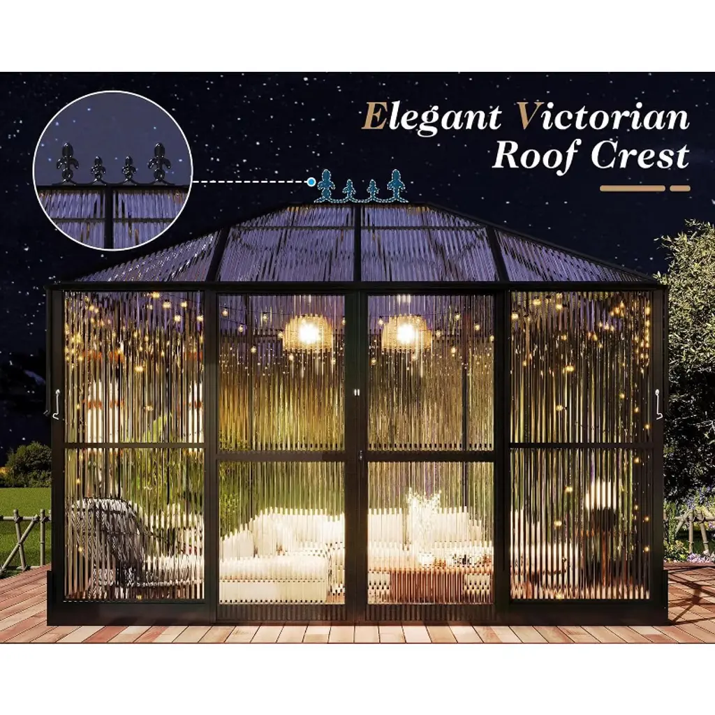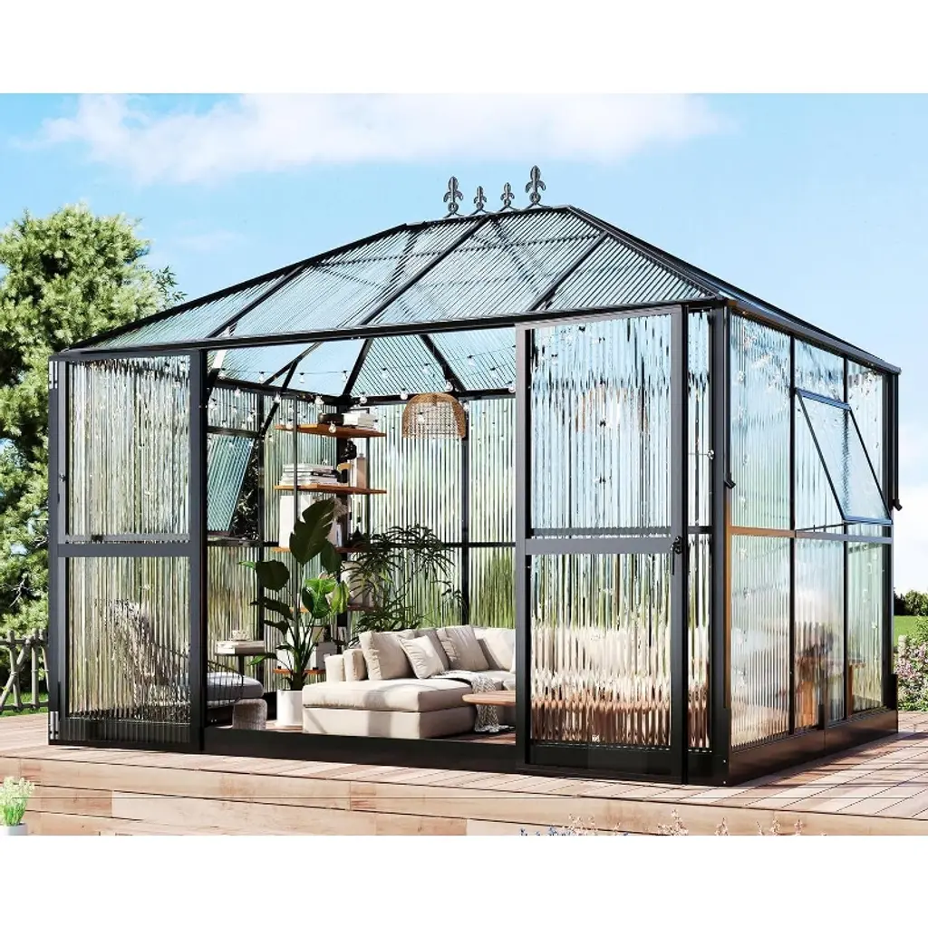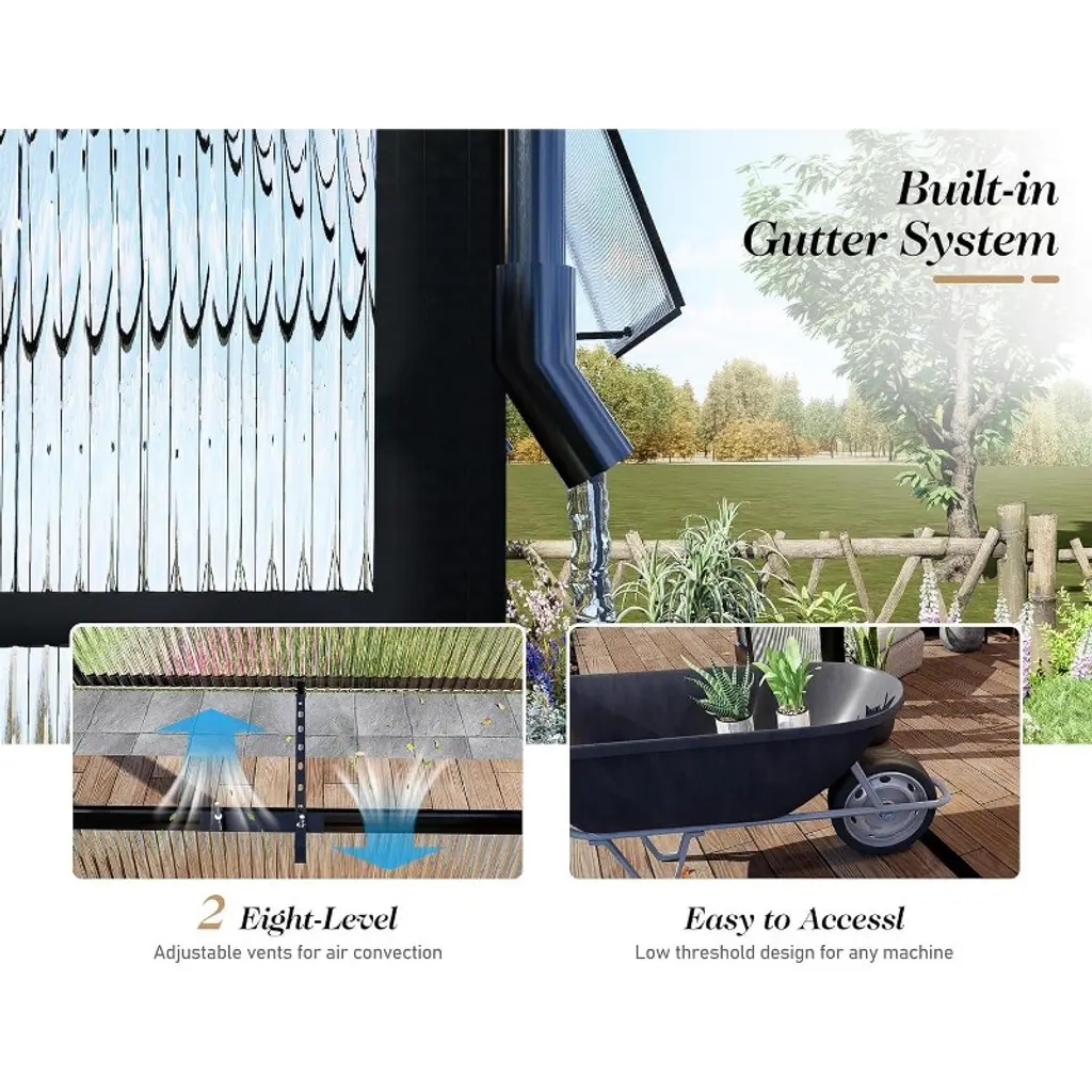 Amerlife 11x8.3x9 Ft Polycarbonate Greenhouse With 4 Vent Windows, Lockable Double Doors