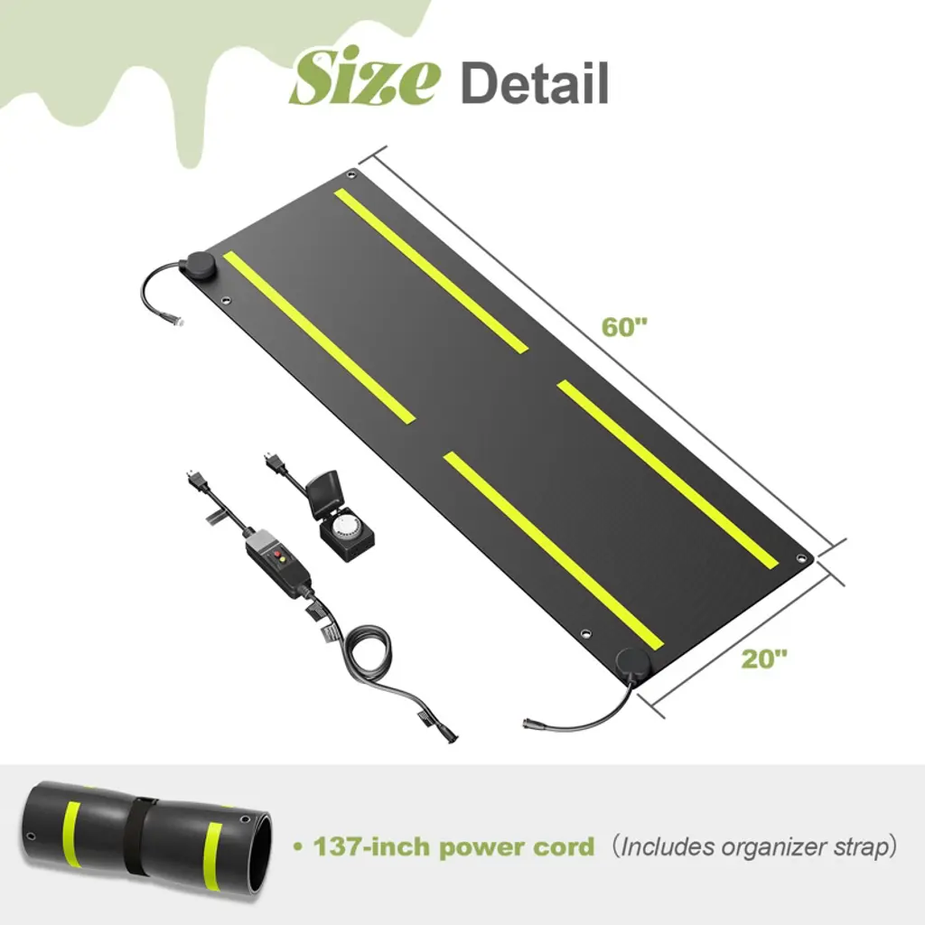 Amerlife 1Pcs 20x60 In Heated Non-slip Snow Melting Mat, Timer, Waterproof Cord, Leak Protection