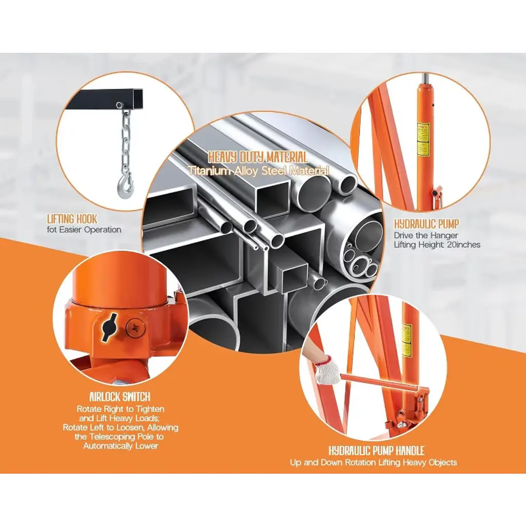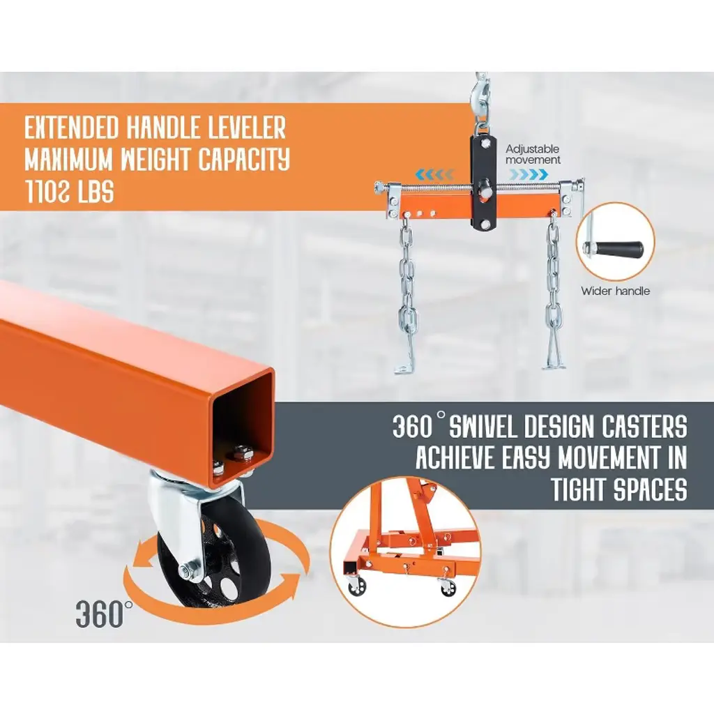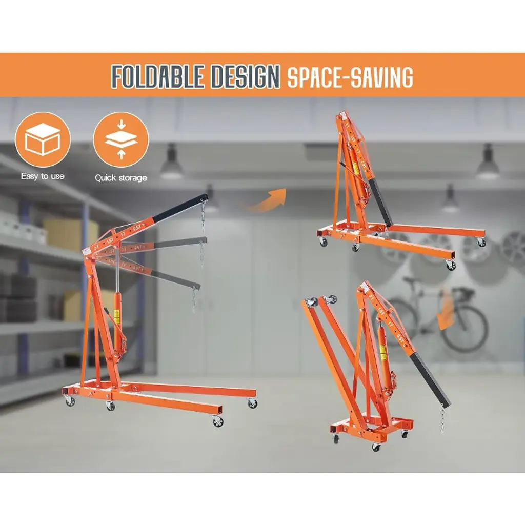 Amerlife 2-ton Hydraulic Engine-hoist With 6 Wheels(with Lever), Foldable Heavy Duty Lift