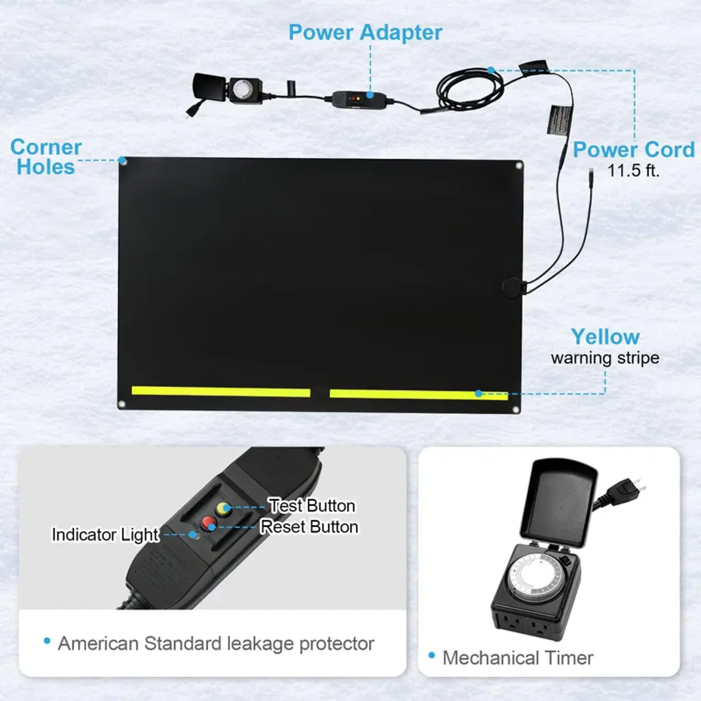 Amerlife 30x48 In Heated Non-slip Snow Melting Mat, Timer, Waterproof Cord, Leak Protection (1 Pc)