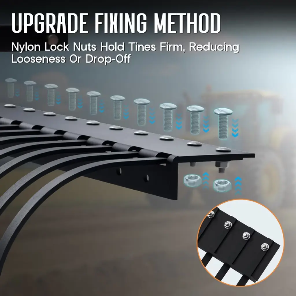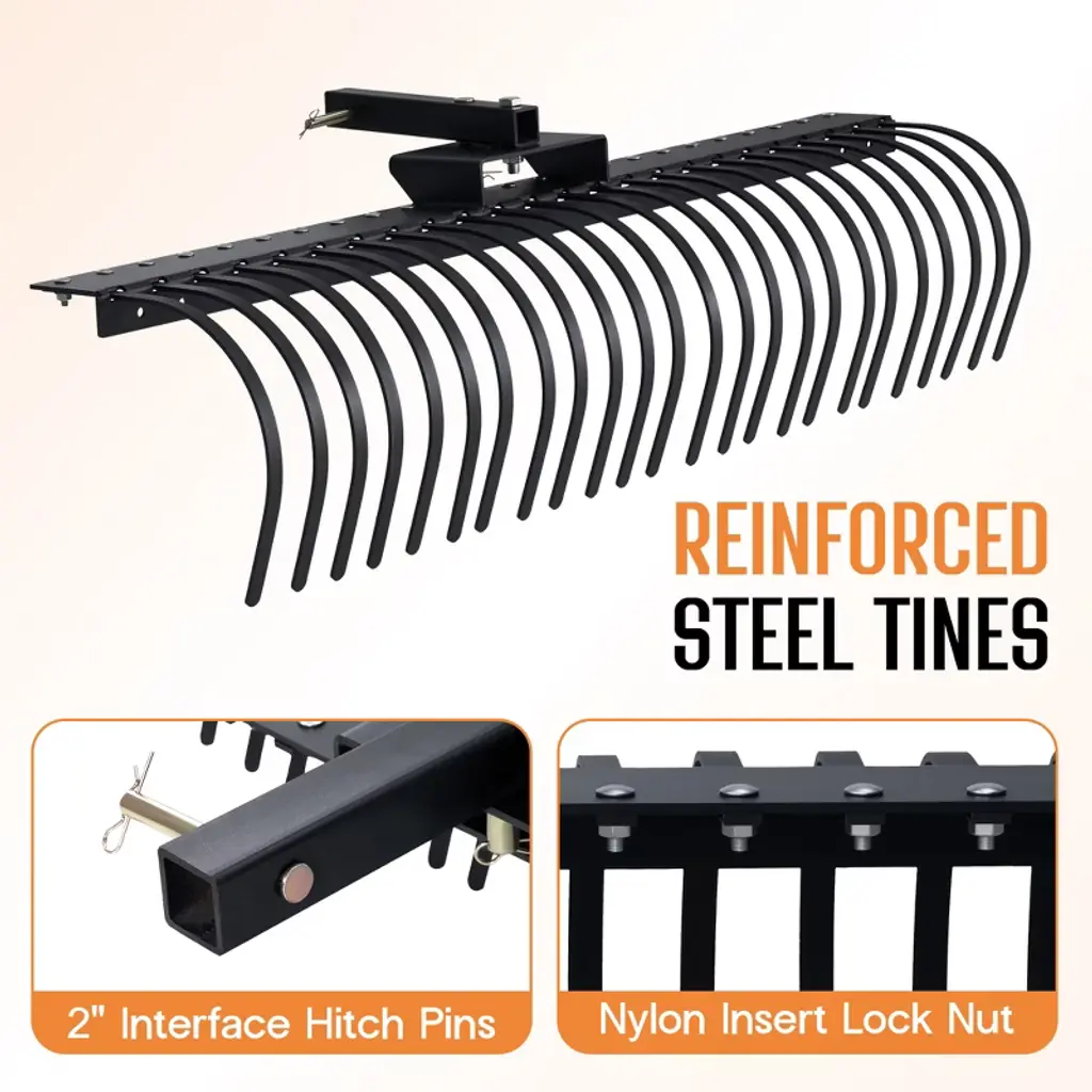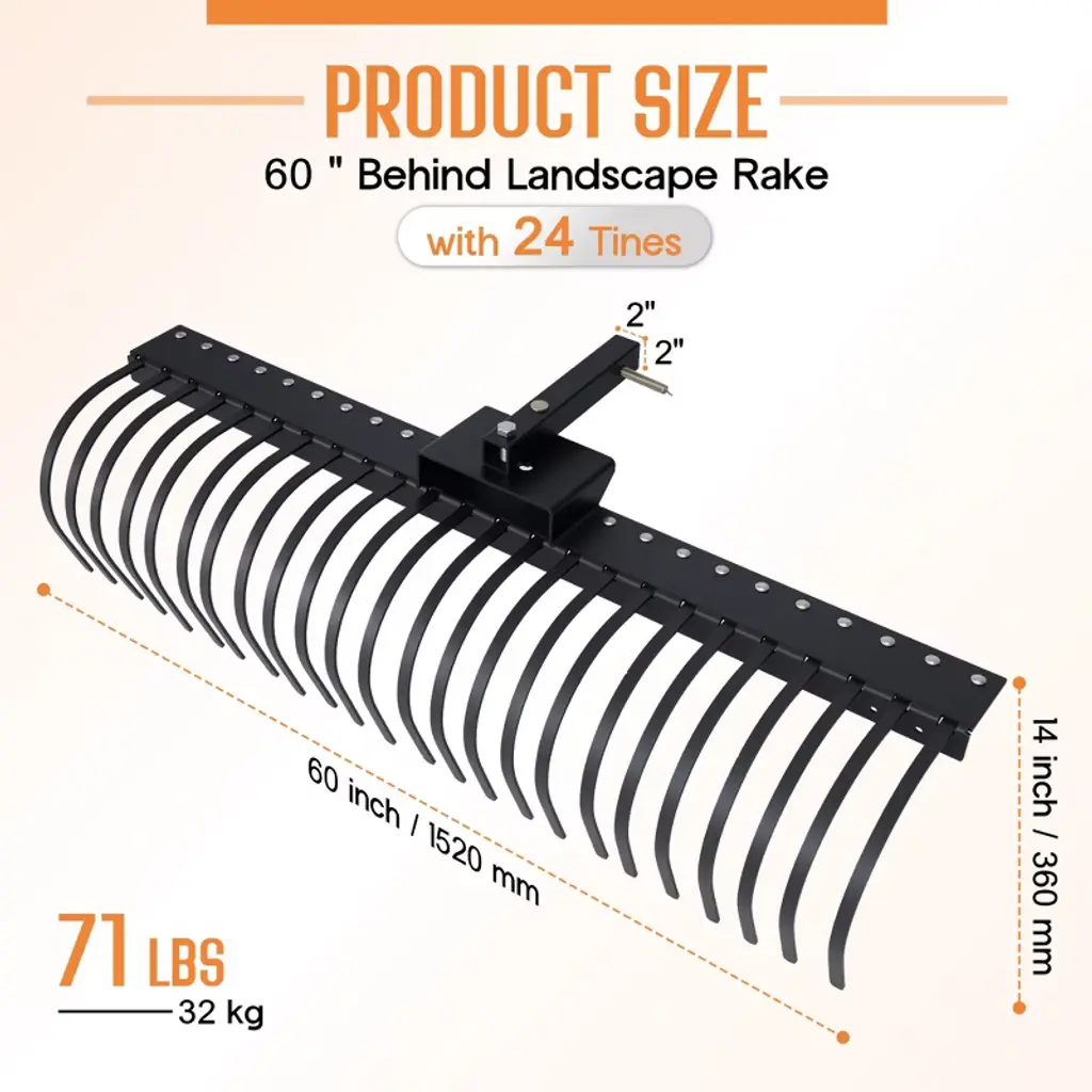 Amerlife 60" Behind Landscape Rake For Tractor, Tow Dethatcher Rake With 24 Steel Coil Tines And 2" Receiver