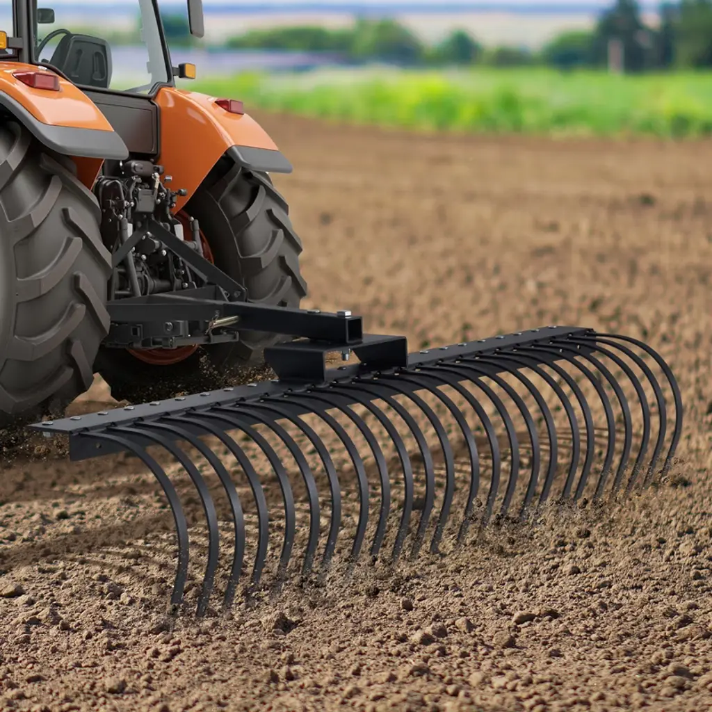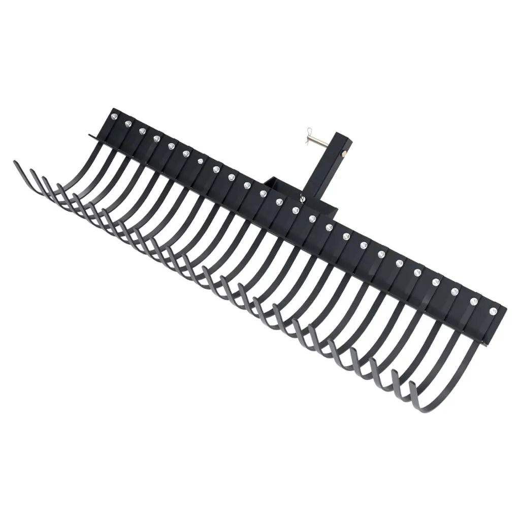 Clear terrain faster with the Behind Landscape Rake, compatible with both 2″ receiver hitches and standard 3‑point tractor systems for easy, secure attachment. Built with durable steel tines and a powder‑coated frame, this rake delivers reliable performance across farms, fields, or properties with tough terrain.