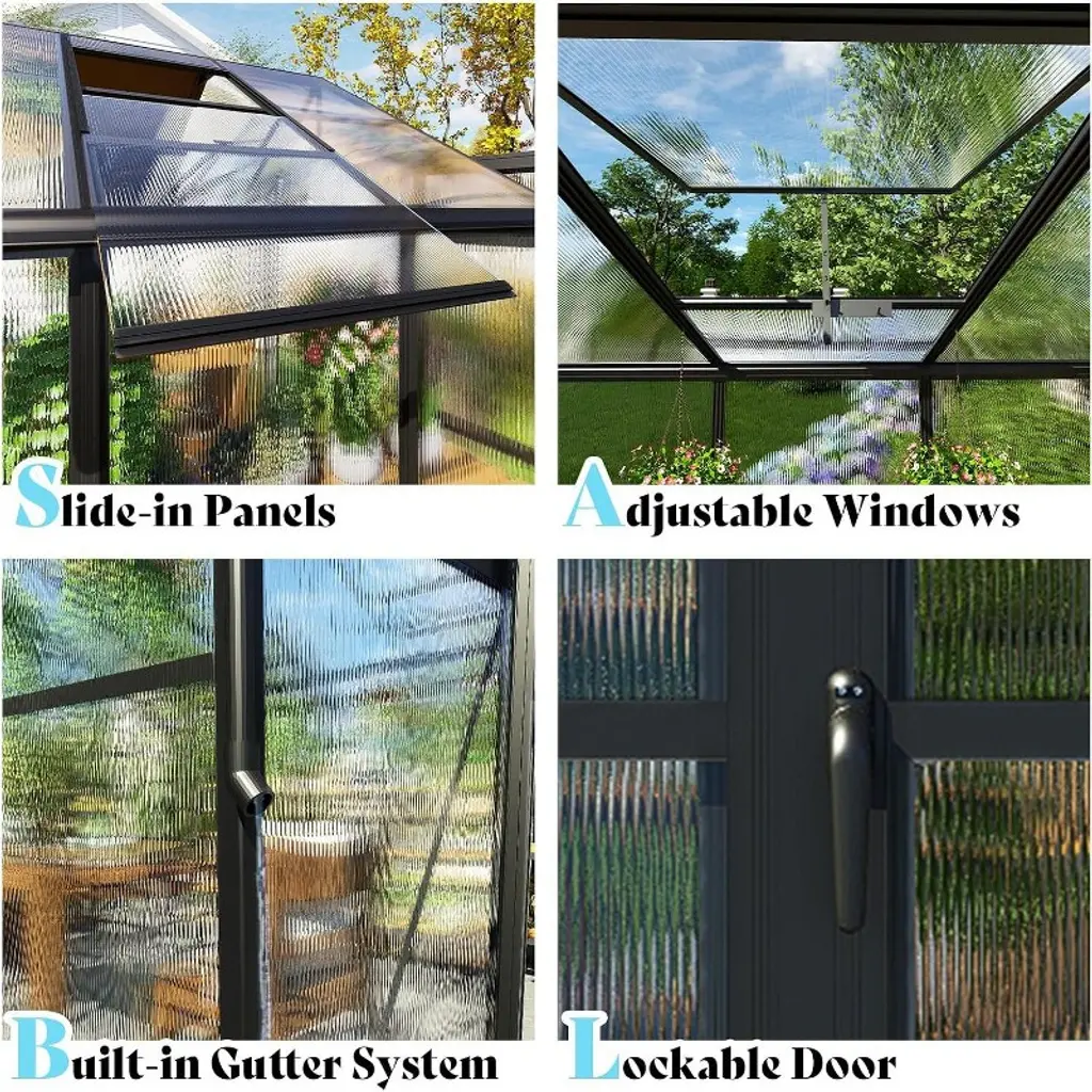 Amerlife 8X12x7 Ft Polycarbonate Greenhouse, Quick-connect Frame, 4 Vents, Swing Lock Door