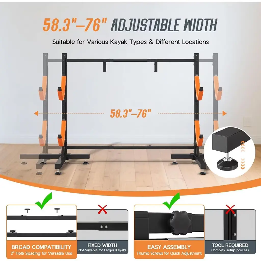 Amerlife Freestanding Kayak Storage Rack, Adjustable Width Stand With Stable Base