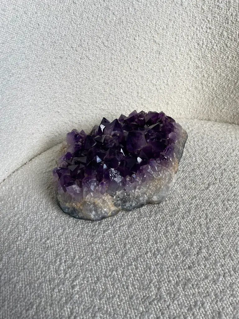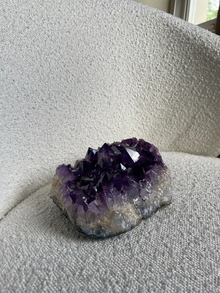 Purple Amethyst is known for its ability to expand the higher mind and enhance one's creativity and passion.It's a stone of spiritual protection and purification; cleansing one's energy field of negative influence and attachments. Amethyst activates spiritual awareness by opening intuition and enhancing psychic abilities. Amethyst relieves physical and emotional stress, it can relieve headaches and tension. It can also help with insomnia and improve sleep quality.Chakra: Third Eye