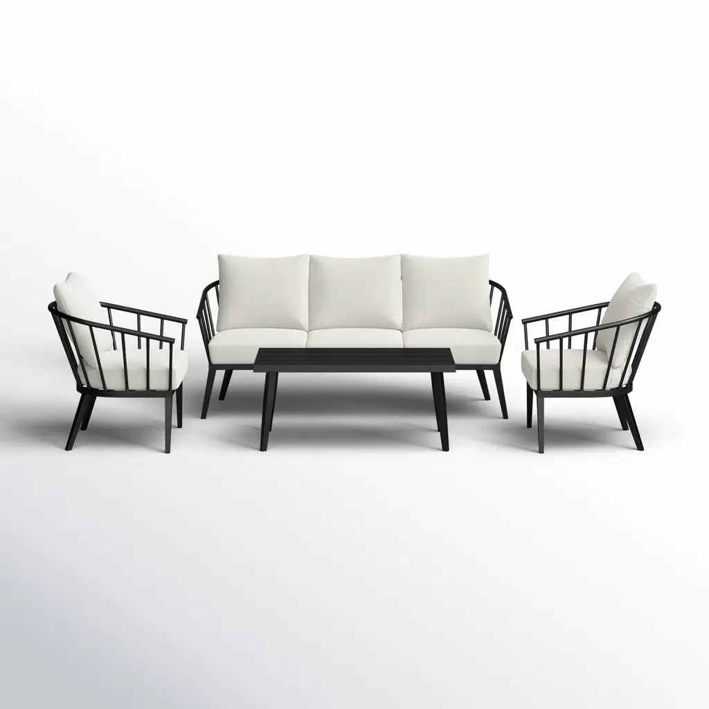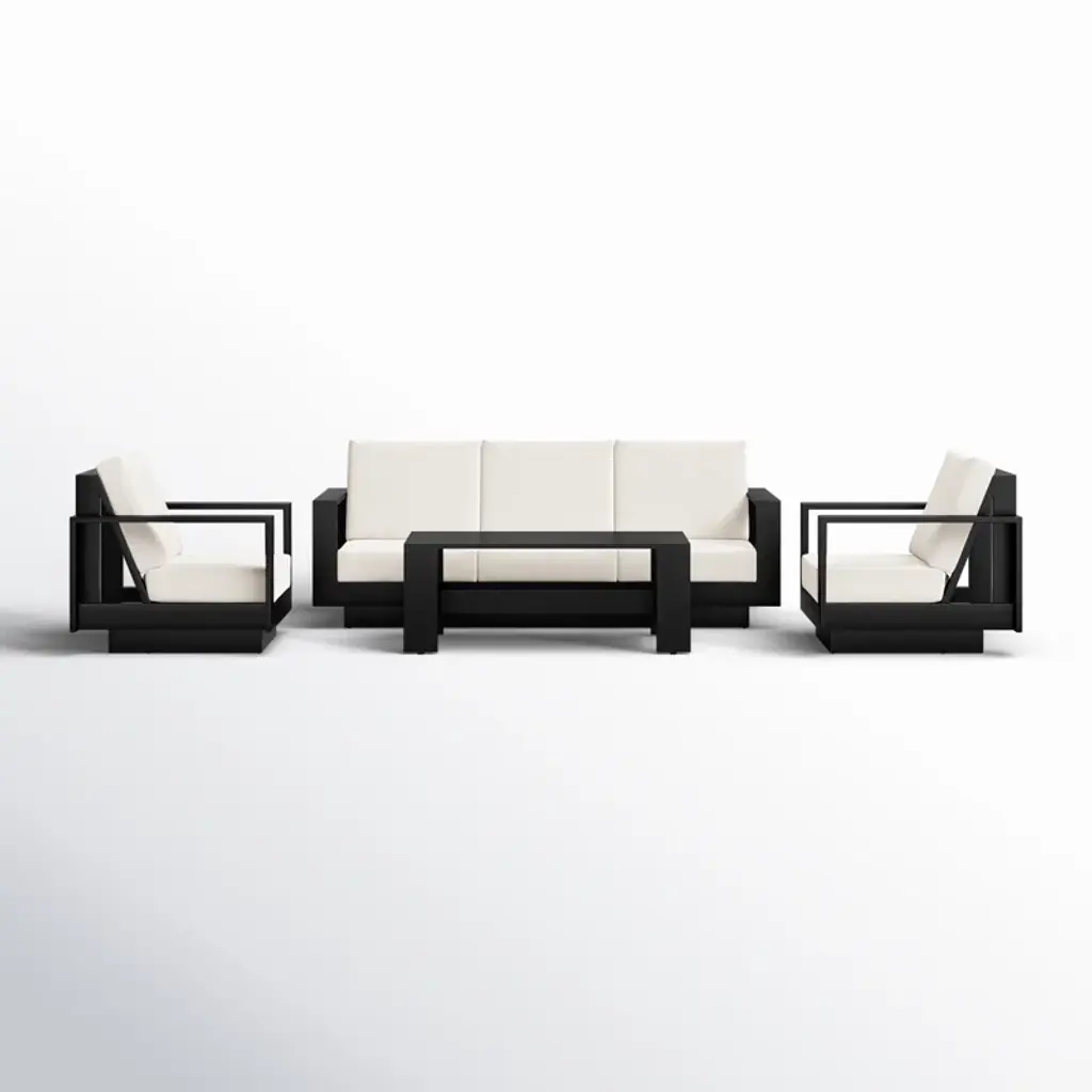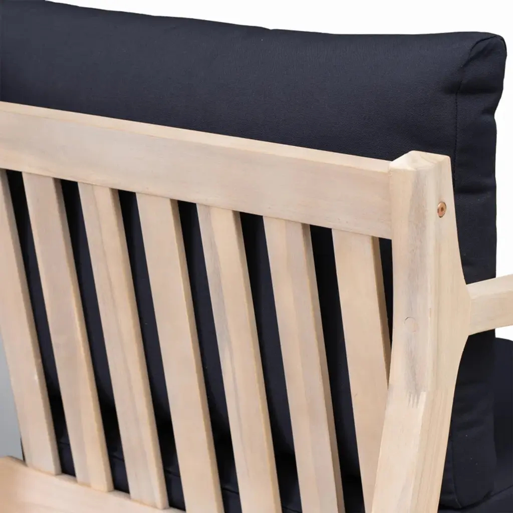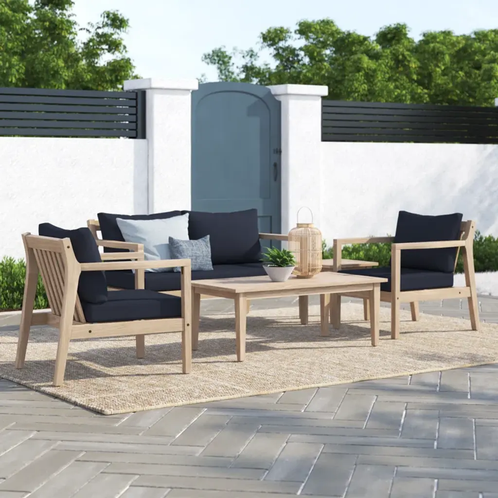 Lounge in luxury. Crafted from solid acacia wood, our 5-piece outdoor conversation set is built to withstand the elements. It includes two armchairs, a loveseat, a coffee table, and a side table. The frames come in a muted tan tone, while foam-filled olefin cushions invite you to sit back and relax. Unzip the covers and toss them into the washing machine for a quick clean as needed.