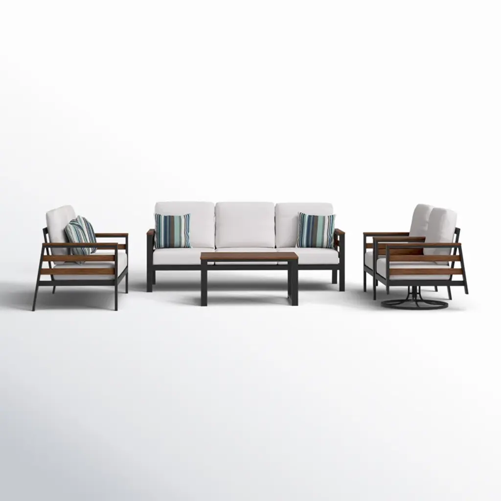 Amina 5 Piece Outdoor Acacia Sofa Seating Group With Cushions