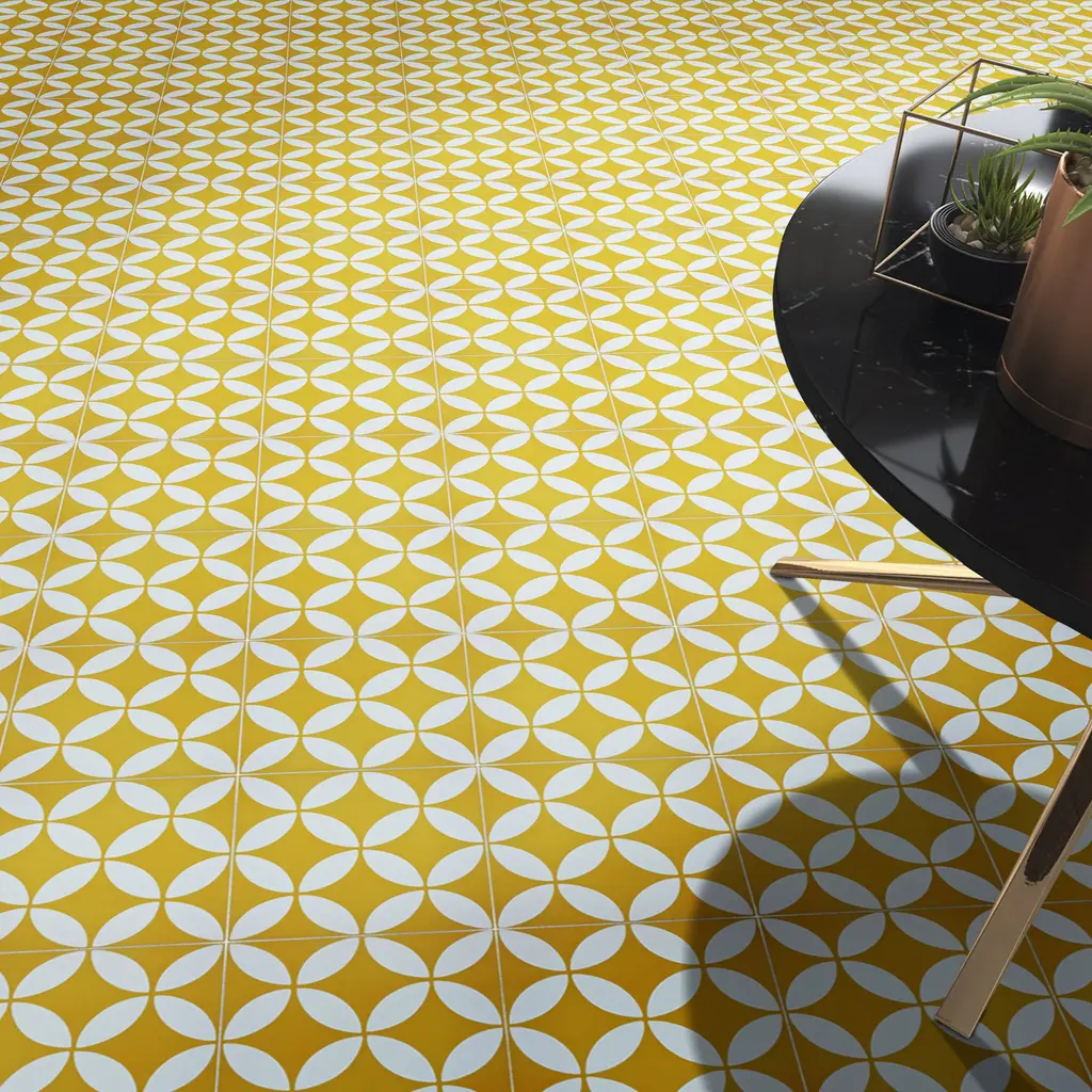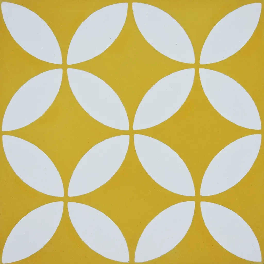 Amlo Handmade Cement Tile, 8X8, Yellow-White - Set Of 12 Tiles