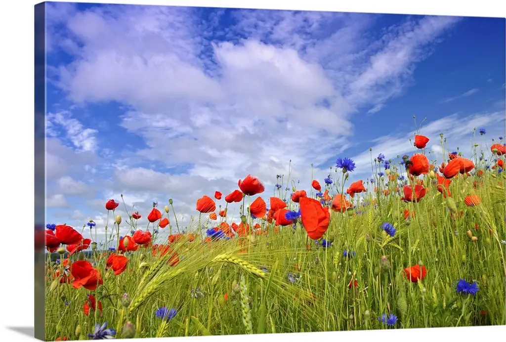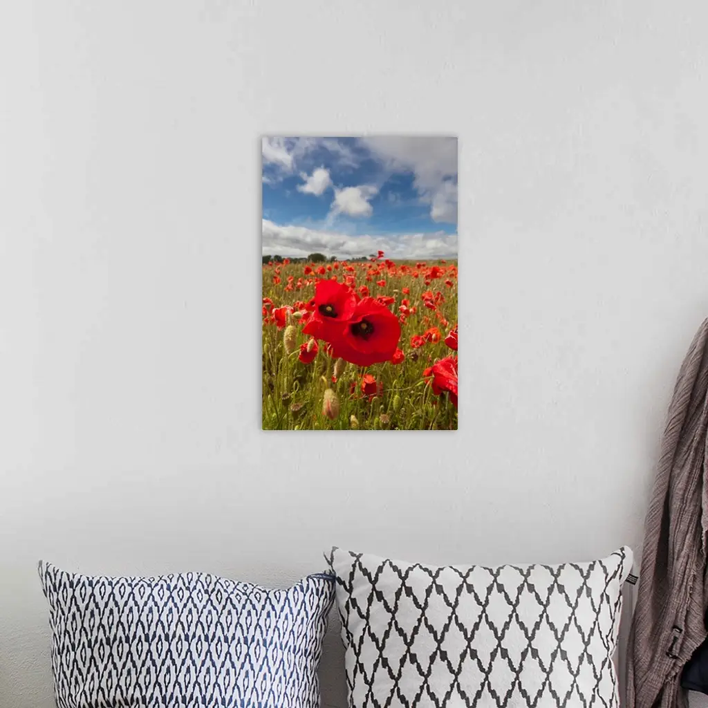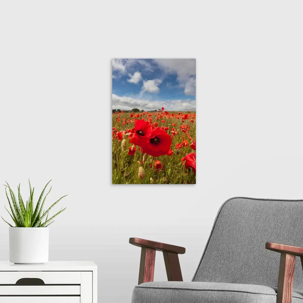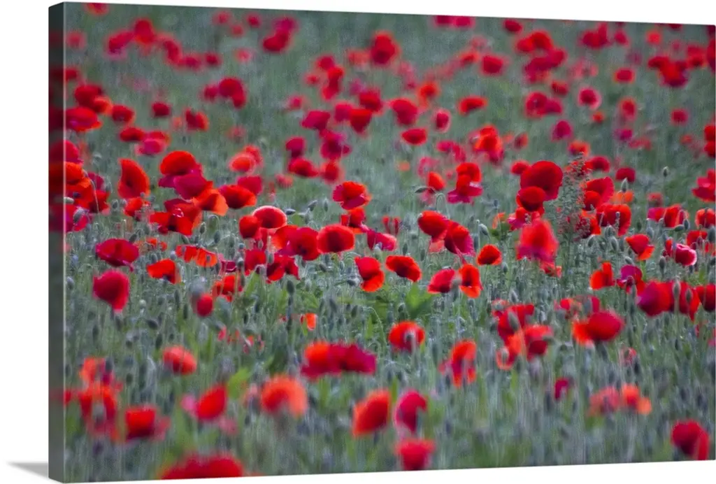 An Abundance Of Red Poppies In A Field, Northumberland, England