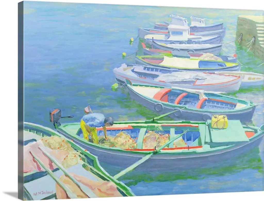 An Colorful Orange Row Boat On A Caribbean Beach In Front Of The Turqoise Caribbean Sea