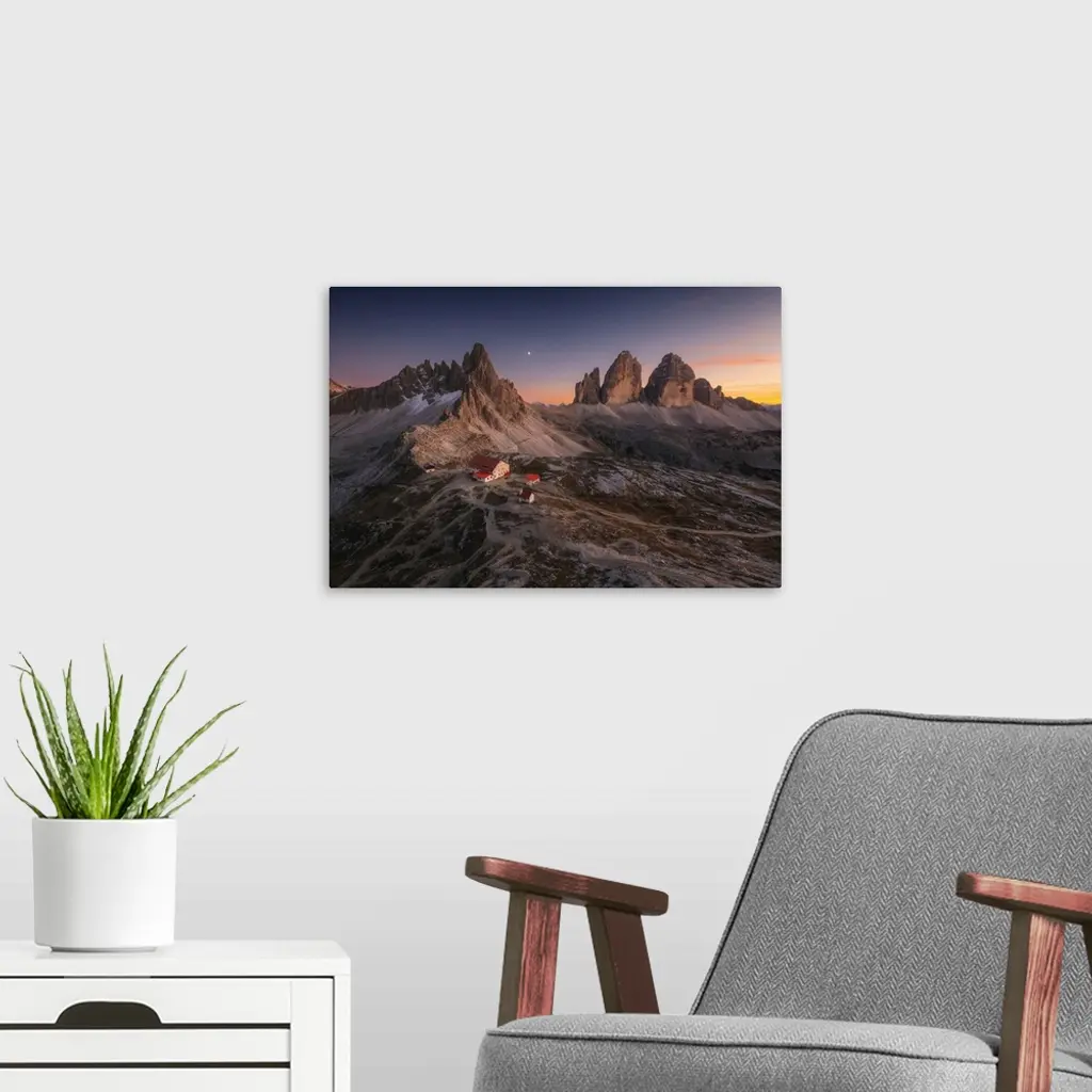 An Early Autumn Sunset Over The Locatelli Hut, Dolomites, Italy