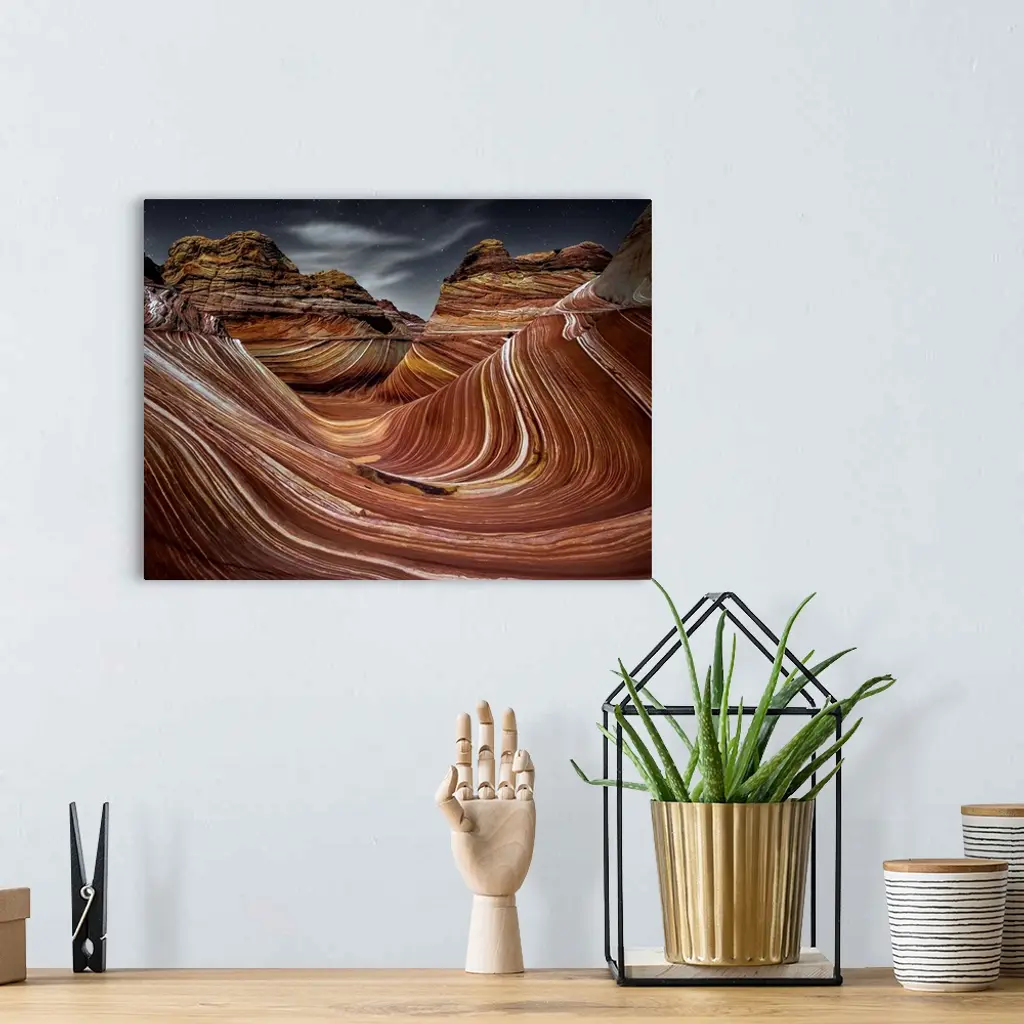 Sandstone formation in Vermilion Hills, Arizona, taken at twilight.