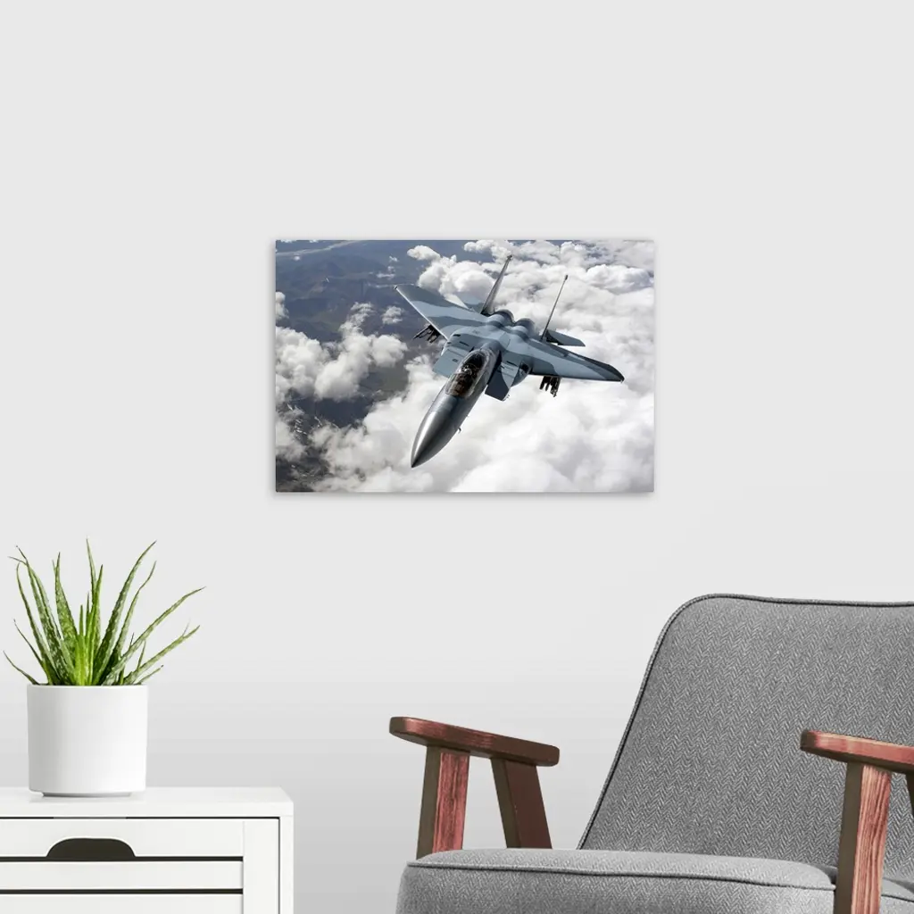 An F15C Aggressor flies over a mountain range wall art for home and office decor. Discover canvas art prints, photos, mural, big canvas art and framed wall art in GreatBigCanvas.com's varied collections.