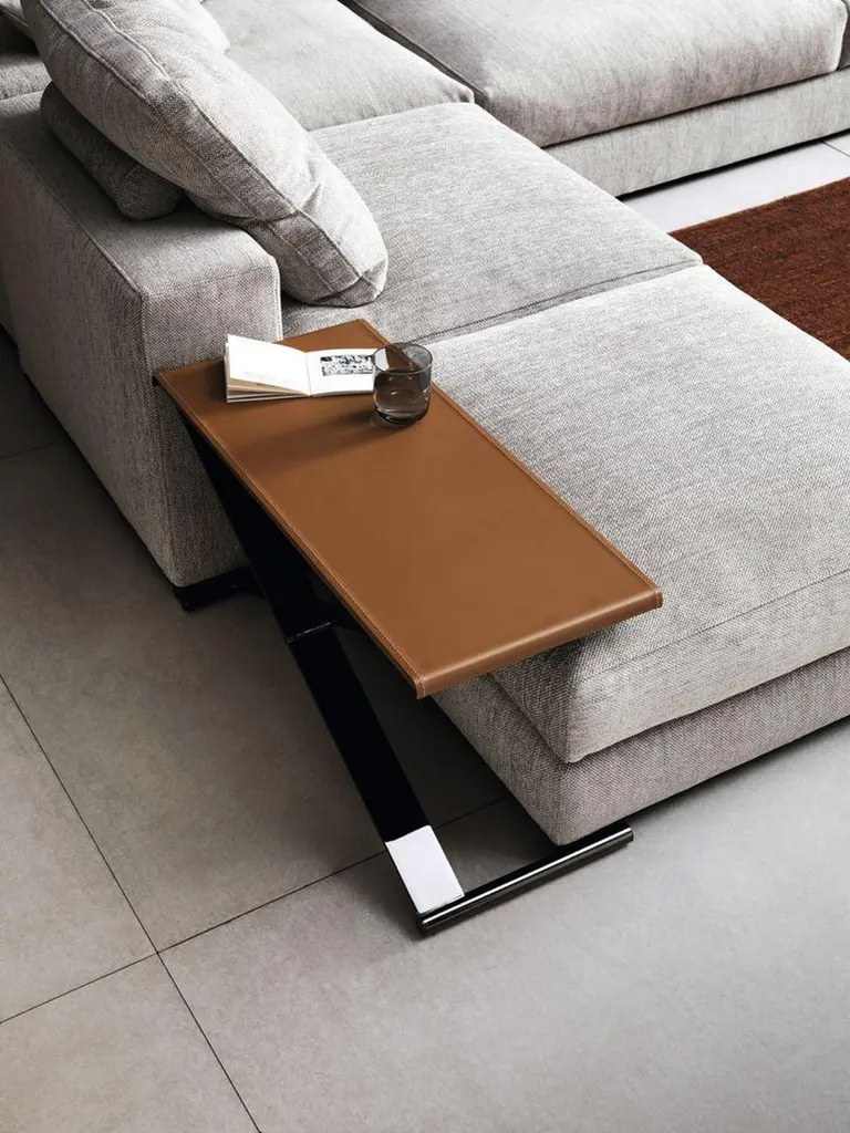 Ananta Class is an informal and versatile modular range that allows endless combinations of the independent backrests and bases available in 80, 120, 160, 200 and 240 cm lengths. The collection, whose very name evokes the idea of infinity, is based on the idea of simplified construction: free from the constraints of armrests and backrests, the seating can be arranged to suit individual needs. It is completed with a side table available in two sizes. The black chrome rest holds up a table top available either in walnut veneer or regenerated leather. The line offers a new, individualistic, modern way of shaping things to fit people’s needs. Fully removable covers.Born in 1953 he left formal education and began, almost by chance, his experience in the field of the padded furniture. Fascinated by the world that surrounded him, he eagerly devoted himself to researching building forms and techniques which have borne fruit for the companies in which he worked. In 1991 he opened his studio as an independent designer and in 1993 he came across Saba Italia. New challenges and new incentives lead to the creation of the “nomad sofa”: Taos, Ananta, Limes, Nesting, Pixel. Creations that were born from reflection of new desires that encourage us to live in a less formal way, equipped with systems that enable change with simple gestures, by playing with shapes.Structure: In wood padded with variable-density polyurethane foam (21IP, 25P, 30P e 40IP), covered with velfodera on a resin-coated backing 200 gr/sqm. The seat is sprung with elastic straps reinforced with polypropylene.Feet: The bases have feet in ABS, while the feet of the backs are in Black nickel finish.Padding: The back cushions are padded with washed and sterilized goose down and 100% polyester fiber divided into sections. Ananta Class proposes two kinds of seats: feather and polyurethane foam versions.Feather version: The seat cushions are filled with washed and sterilized goose feather divided into sections and covered with white 100% cotton fabric with variable-density polyurethane foam (30IP, 35IM).Foam version: The seat cushions are padded with variable-density polyurethane foam (30IP, 25IM), covered with fine velvet coupled with dacron 380 gr/sqm.Additional information:Material: Polyurethane foam, upholstery, ABSUpholstery: Cat. Lusso, Lima A13 - col.11Frame finish: Black nickelDimensions: Low table: 35 W x 80 D x 47 H cmSofa: 270 W x 95 D x 58 H cmSeat height: 42 cmAvailable in other upholstery options: C, E, special, vip, top, elite, royal, pelle club, extra, pelle master, pelle floridaAvailable in other frame option: CortenAvailable in other size options: Small, mediumAvailable in other structural options