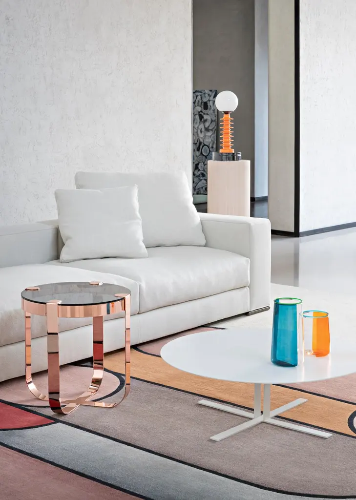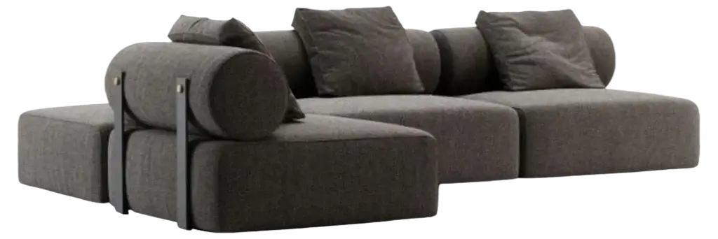 Ananta Class is an informal and versatile modular range that allows endless combinations of the independent backrests and bases available in 80, 120, 160, 200 and 240 cm lengths. The collection, whose very name evokes the idea of infinity, is based on the idea of simplified construction: free from the constraints of armrests and backrests, the seating can be arranged to suit individual needs. It is completed with a side table available in two sizes. The black chrome rest holds up a table top available either in walnut veneer or regenerated leather. The line offers a new, individualistic, modern way of shaping things to fit people’s needs. Fully removable covers.Born in 1953 he left formal education and began, almost by chance, his experience in the field of the padded furniture. Fascinated by the world that surrounded him, he eagerly devoted himself to researching building forms and techniques which have borne fruit for the companies in which he worked. In 1991 he opened his studio as an independent designer and in 1993 he came across Saba Italia. New challenges and new incentives lead to the creation of the “nomad sofa”: Taos, Ananta, Limes, Nesting, Pixel. Creations that were born from reflection of new desires that encourage us to live in a less formal way, equipped with systems that enable change with simple gestures, by playing with shapes.Structure: In wood padded with variable-density polyurethane foam (21IP, 25P, 30P e 40IP), covered with velfodera on a resin-coated backing 200 gr/sqm. The seat is sprung with elastic straps reinforced with polypropylene.Feet: The bases have feet in ABS, while the feet of the backs are in Black nickel finish.Padding: The back cushions are padded with washed and sterilized goose down and 100% polyester fiber divided into sections. Ananta Class proposes two kinds of seats: feather and polyurethane foam versions.Feather version: The seat cushions are filled with washed and sterilized goose feather divided into sections and covered with white 100% cotton fabric with variable-density polyurethane foam (30IP, 35IM).Foam version: The seat cushions are padded with variable-density polyurethane foam (30IP, 25IM), covered with fine velvet coupled with dacron 380 gr/sqm.Additional information:Material: Polyurethane foam, upholstery, ABSUpholstery: Cat. Lusso, Lima A13 - col.11Frame finish: Black nickelDimensions: Low table: 35 W x 80 D x 47 H cmSofa: 286 W x 80 D x 58 H cmSeat height: 42 cmAvailable in other upholstery options: C, E, special, vip, top, elite, royal, pelle club, extra, pelle master, pelle floridaAvailable in other frame option: CortenAvailable in other size options: Small, mediumAvailable in other structural options
