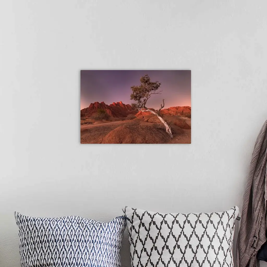 Ancient Granite Mountains And Single Tree At Dusk, Spitzkoppe, Namib Desert, Namibia wall art for home and office decor. Discover canvas art prints, photos, mural, big canvas art and framed wall art in GreatBigCanvas.com's varied collections.