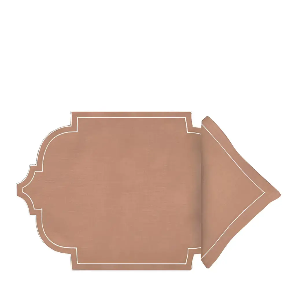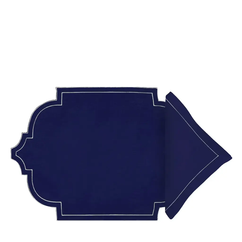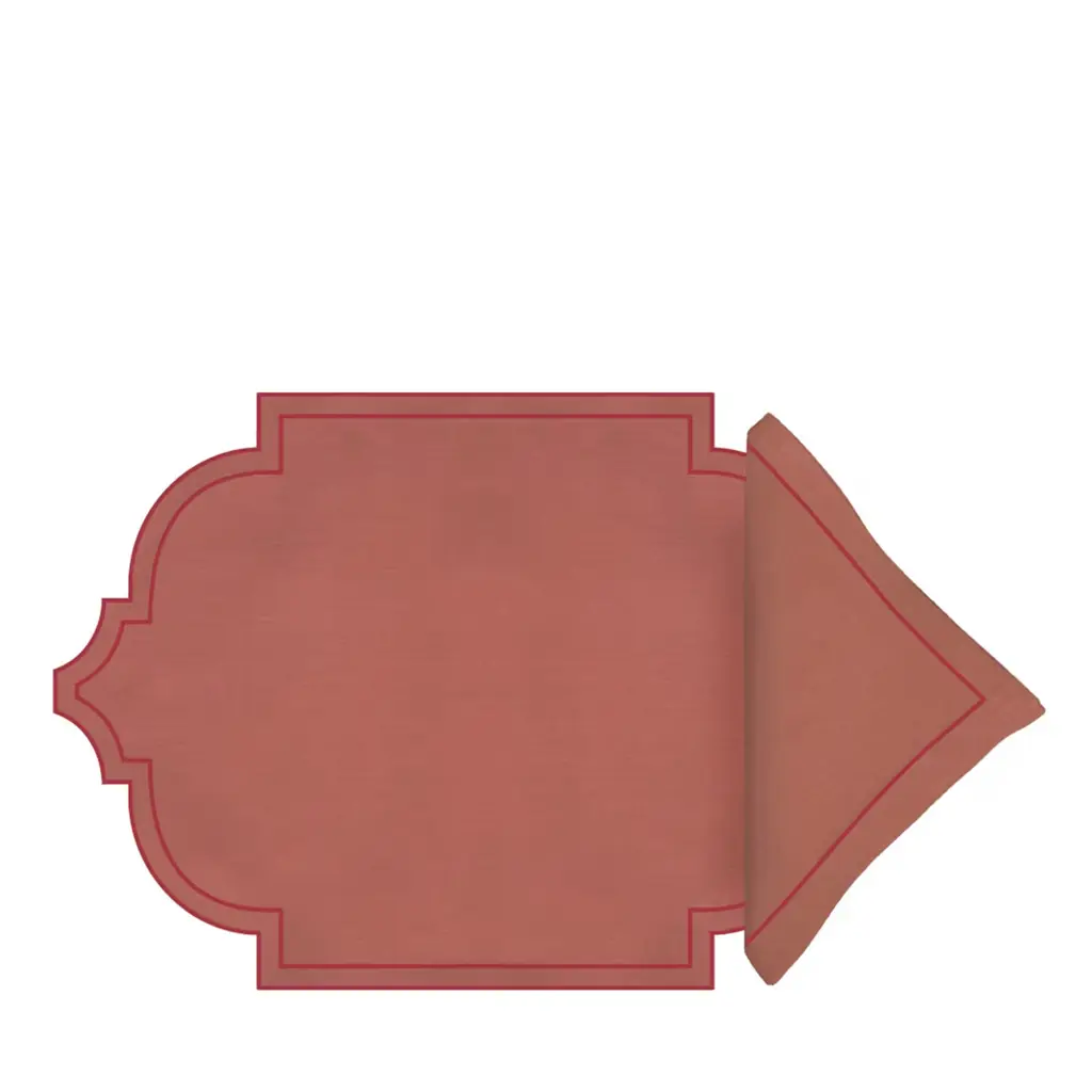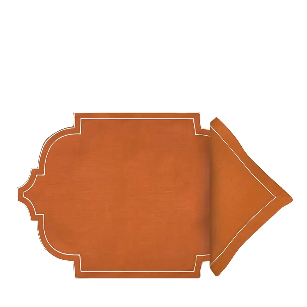 Its beauty is in the uniqueness of its limited-edition linen fabric which is crafted in a lovely new shape. This set includes a placemat 16” x 20” and a napkin 20”x 20”. 100% Linen, Made in Italy. Please inquire with the Concierge for more options.