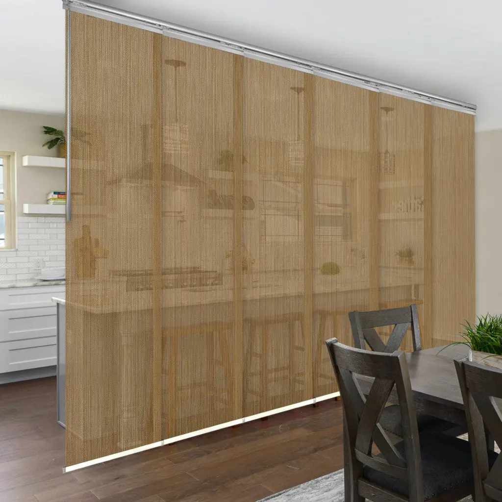 Central Design Products is pleased to introduce a new innovative panel track that offers easy 2-way installation, adding an alluring style and refined touch to your home decor. The single rail design of the track is sleek, compact, and reduces the overall footprint and weight of the installation, eliminating bulky, intrusive window treatments. Adjusting the panel height is a breeze � simply trim the panel, re-attach the liner, and install the panel weight. Detailed instructions are included.The panel track also features a patented slider design, made with aluminum and fitted with bearings that allow for durable and smooth operation. The sliders are stacked closer together than conventional panel tracks, reducing light bleed coming from the gaps between panels. This track has endless uses from dividing rooms, garages, offices, and closets to decorating windows and patios. Available in larger sizes including 8, 10, and 12 panels. Extends from 98-130� wide. Each panel measures 23.5" wide and 116" tall, with a total installation height of 118.5" (includes the 2.5" rail track). The track can be wall or ceiling mounted. The panels can stack on the left or the right. The clearance from the wall is extendable from 1.25� to 3.25� and projection from the wall is extendable from 3� to 4.25�. Anders panel is made from 80% Vinyl 20% Polyester, with a light filtering shade that blocks 40% of the light.
