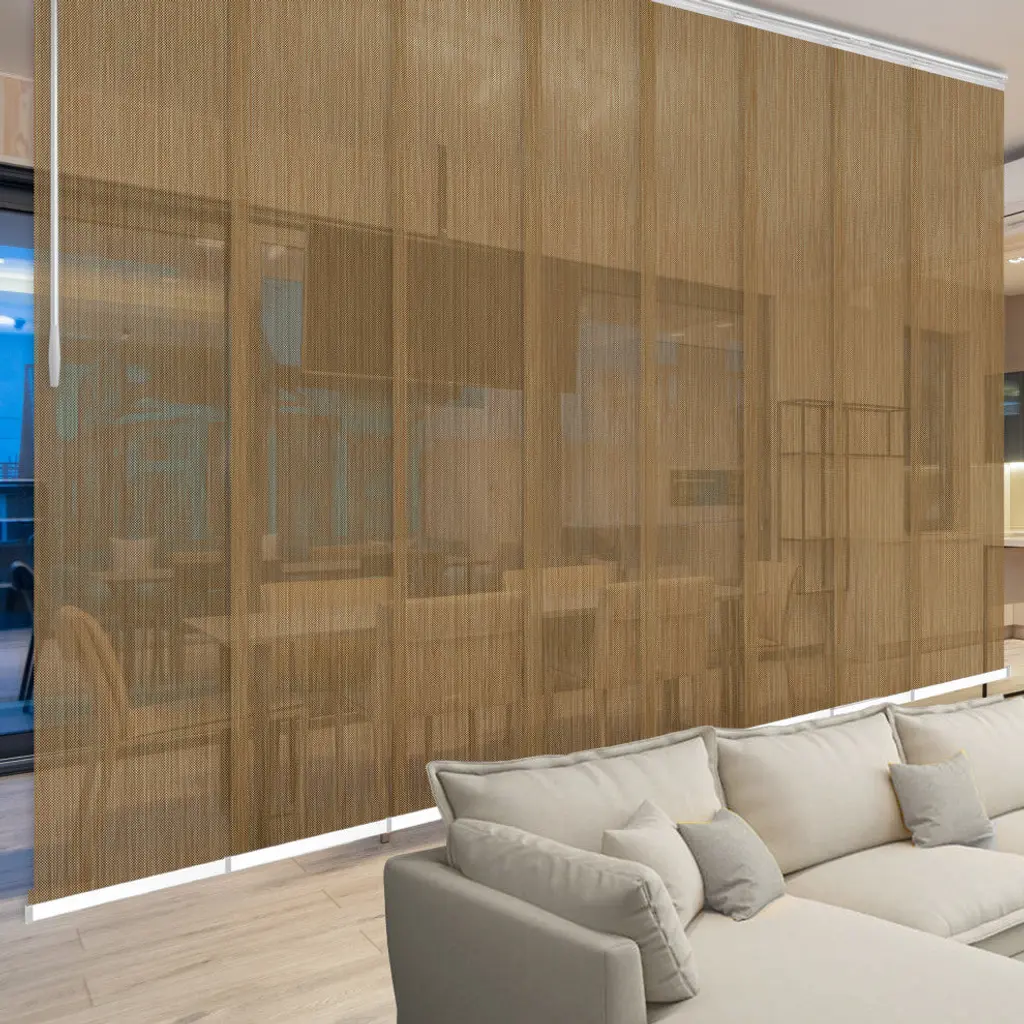 Central Design Products is pleased to introduce a new innovative panel track that offers easy 2-way installation, adding an alluring style and refined touch to your home decor. The double rail design of the track is sleek, compact, and reduces the overall footprint and weight of the installation, eliminating bulky, intrusive window treatments. Adjusting the panel height is a breeze � simply trim the panel, re-attach the liner, and install the panel weight. Detailed instructions are included.The panel track also features a patented slider design, made with aluminum and fitted with bearings that allow for durable and smooth operation. The sliders are stacked closer together than conventional panel tracks, reducing light bleed coming from the gaps between panels. This track has endless uses from dividing rooms, garages, offices, and closets to decorating windows and patios. Available in smaller sizes including 3, 4, 5, 6, and 7 panels. Extends from 130-175� wide. Each panel measures 23.5" wide and 116" tall, with a total installation height of 118.5" (includes the 2.5" rail track). The track can be wall or ceiling mounted. The panels can stack on the left or the right. The clearance from the wall is extendable from 1.25� to 3.25� and projection from the wall is extendable from 3� to 4.25�. Anders panel is made from 80% Vinyl 20% Polyester, with a light filtering shade that blocks 40% of the light.