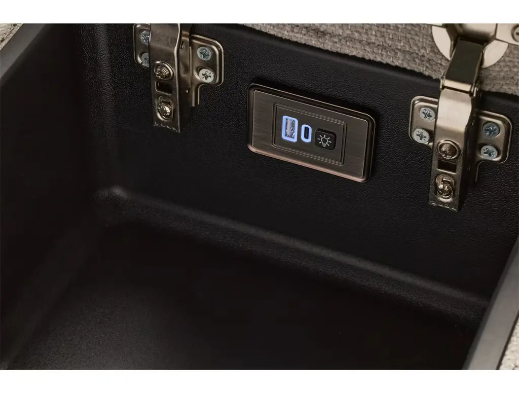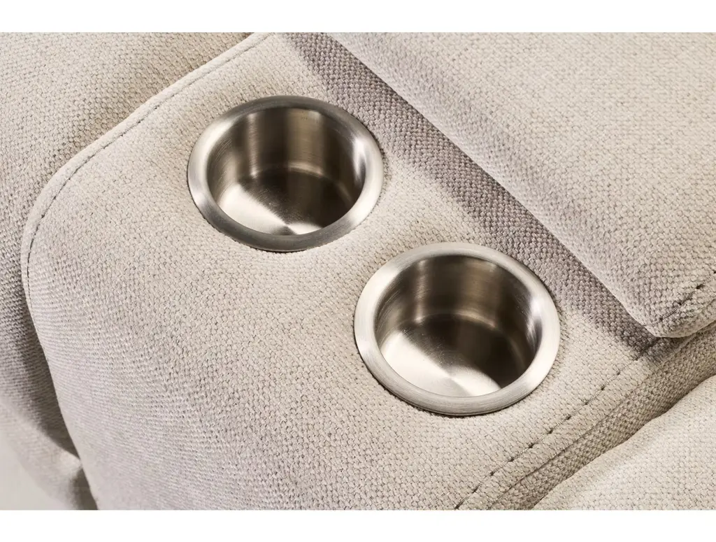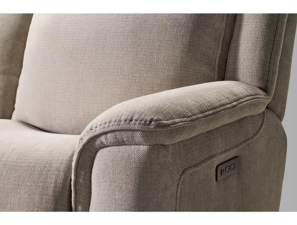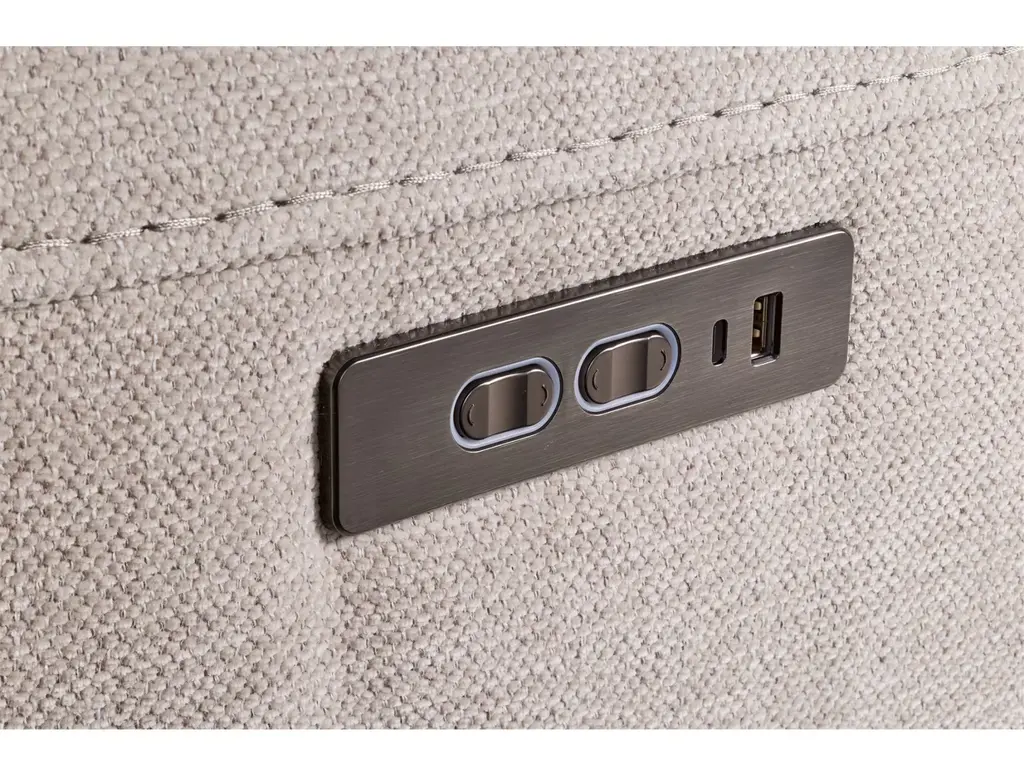 Relax in luxurious comfort with the Anders Power Loveseat Recliner with Power Headrest and Console from Kuka Furniture. This contemporary-style loveseat features soft fabric upholstery with padded arms, and tufted backs and footrests. View your favorite programs sitting upright or recline and take a nap at the touch of a button. The center console includes a storage compartment, light, USB ports, and two cup holders. There are also convenient USB port on the sides so you charge your electronic device while you recline.