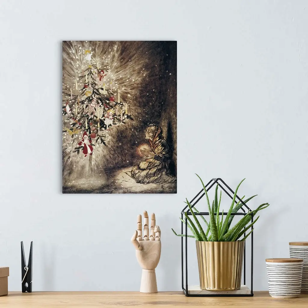'She was sitting under the loveliest Christmas tree.' Drawing, 1932, by Arthur Rackham for the fairy tale by Hans Christian Andersen.