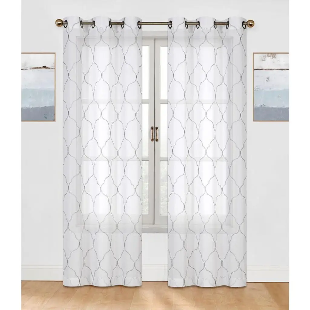 Update the look of any window or any room with our Andora Embroidered Grommet top sheer curtain set. This curtain set features full width 2 panels at 54" eachand modern all over embroidery with top grommet rings. Available in full range of lengths this window treatment will surely add freshness and update to any room. •Sold in Pairs•100% Polyester •Embroidered, Sheer Sateen Panels•Grommet Top Rings to fit up to 1.5" rod Diameter •Allows Light in while keeping privacy •Royal Tradition Collection•Dry Clean Available Sizes Include:•108" Wide x 63" Long Pair (54"� Wide x 63"� L Each)•108" Wide x 84" Long Pair (54"� Wide x 84"� L Each)•108" Wide x 96" Long Pair (54"� Wide x 96"� L Each)•108" Wide x 108" Long Pair (54"� Wide x 108"� L Each)