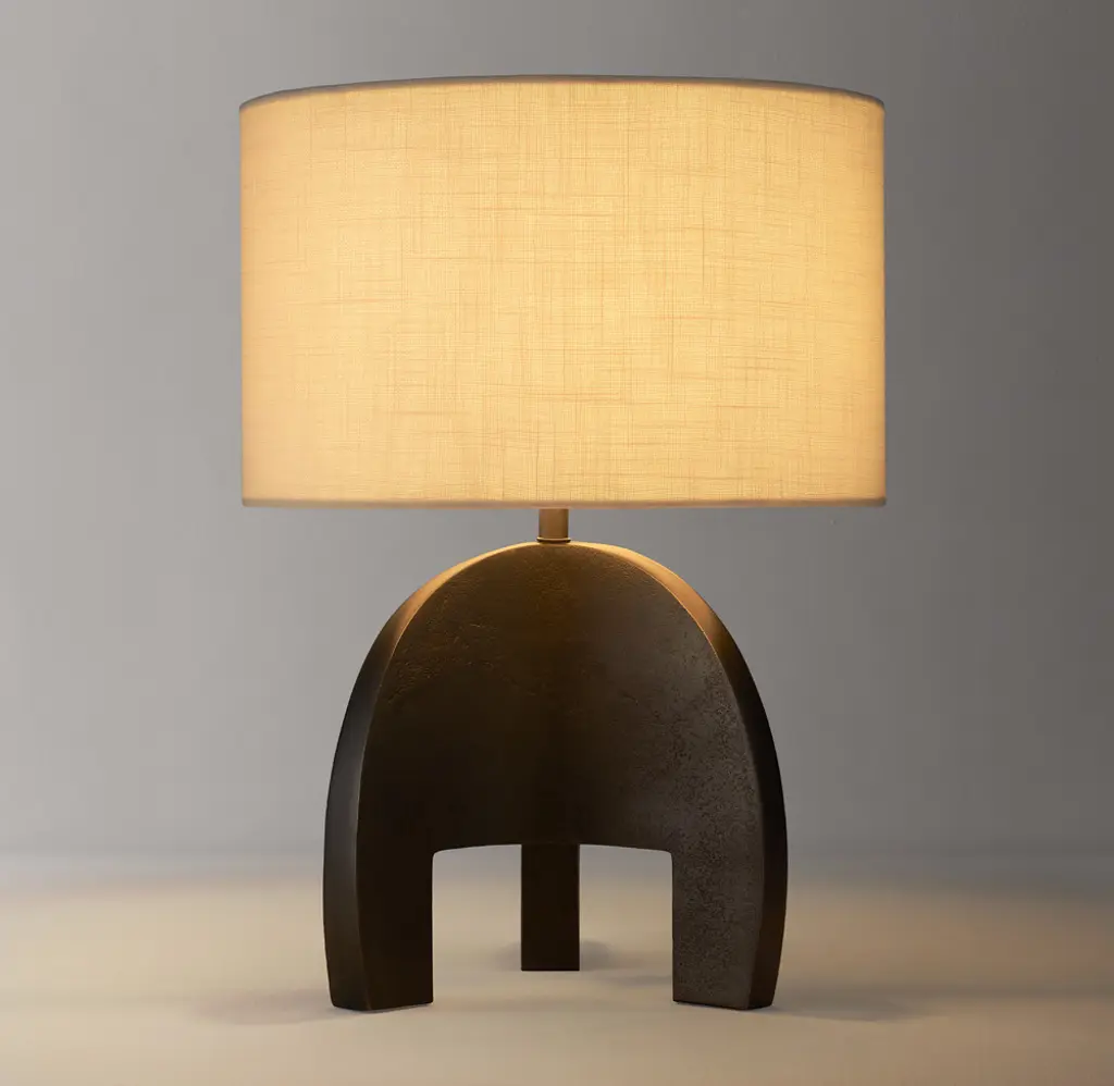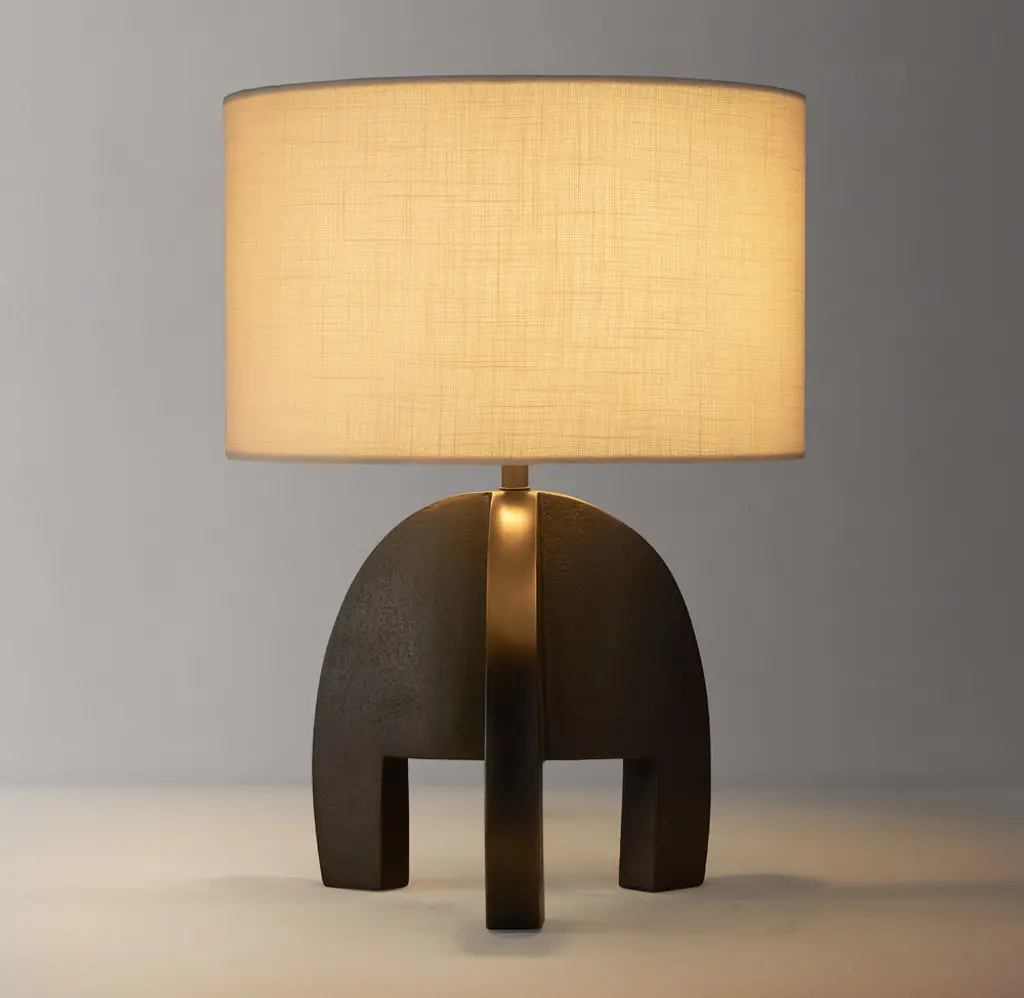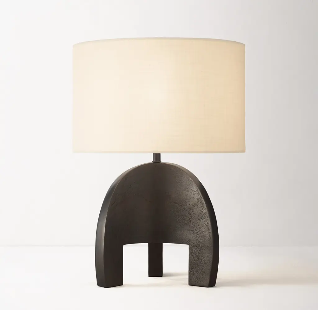 Inspired by biomorphic sculptures of the early 20th century, our table lamp is modern art as lighting. Pure and minimal in sand-cast metal, the rhythmic interplay of fluid curves and crisp angles is a study in density and lightness, positive and negative space.